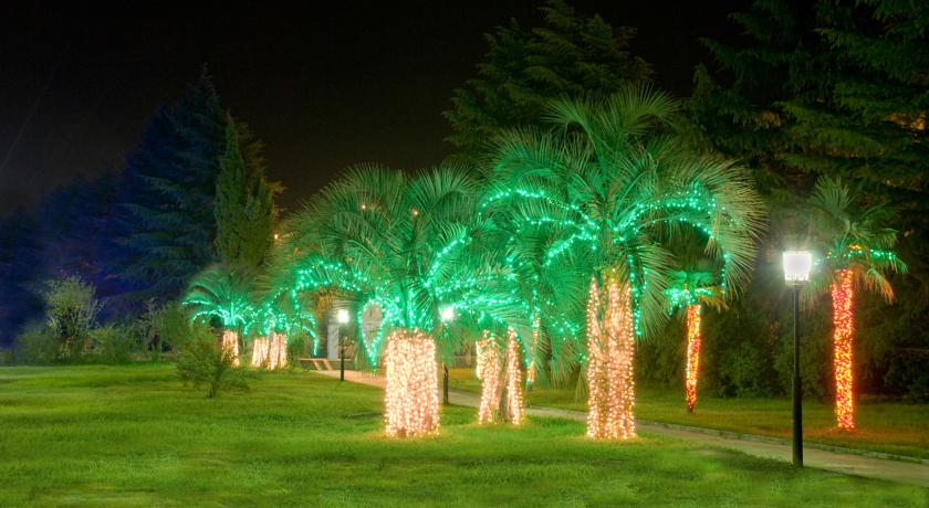 Пансионат расположен на живописной территории дендро-парка в 11,5 гектаров с беседками и фонтанами. Собственный оборудованный галечный пляж, открытый и крытый бассейн с морской подогреваемой водой, теннисные корты, тренажерные залы позволят провести отпуск активно, аниматоры и развлекательные программы добавят положительных эмоций.