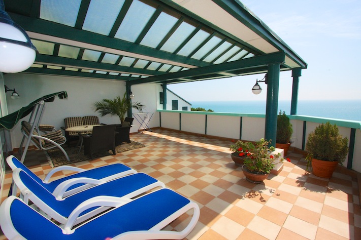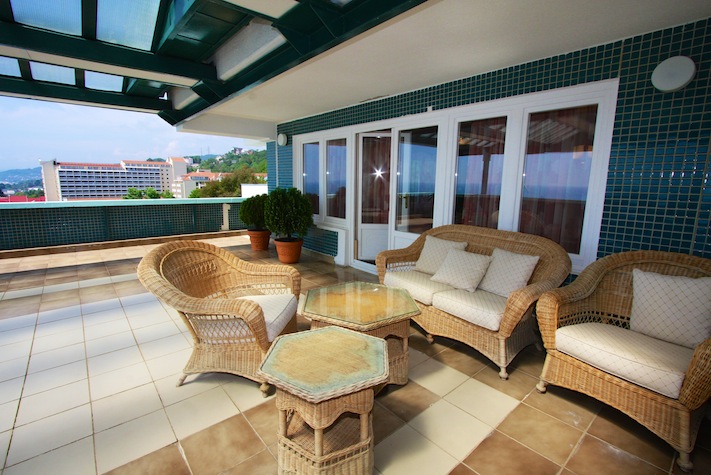 Так же на каждом этаже есть открытые террасы, оснащенные удобной мягкой мебелью, с которых открывается замечательный вид на море.