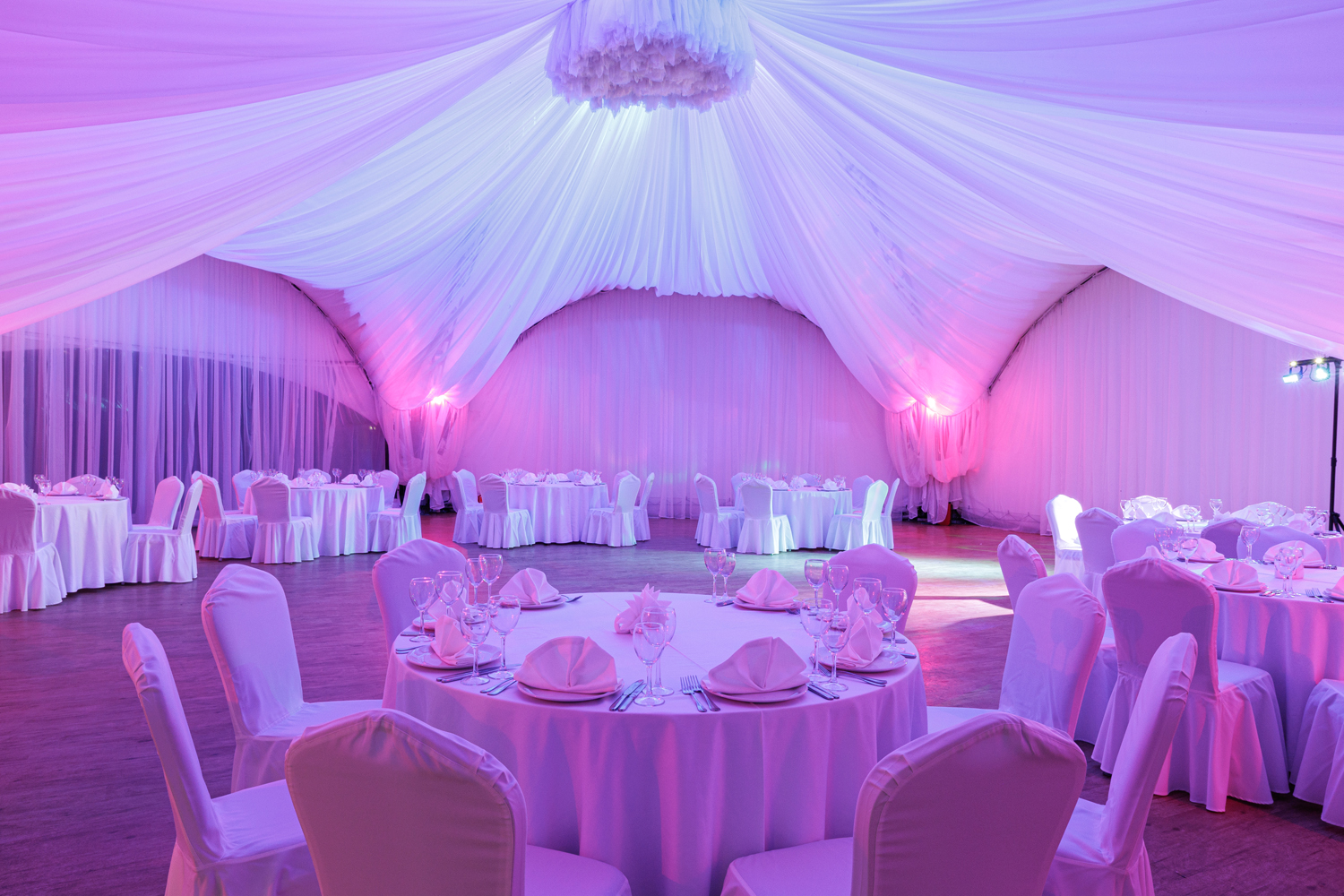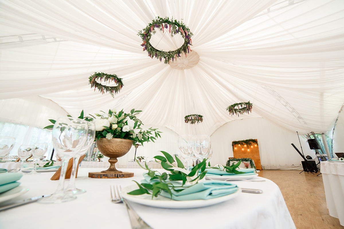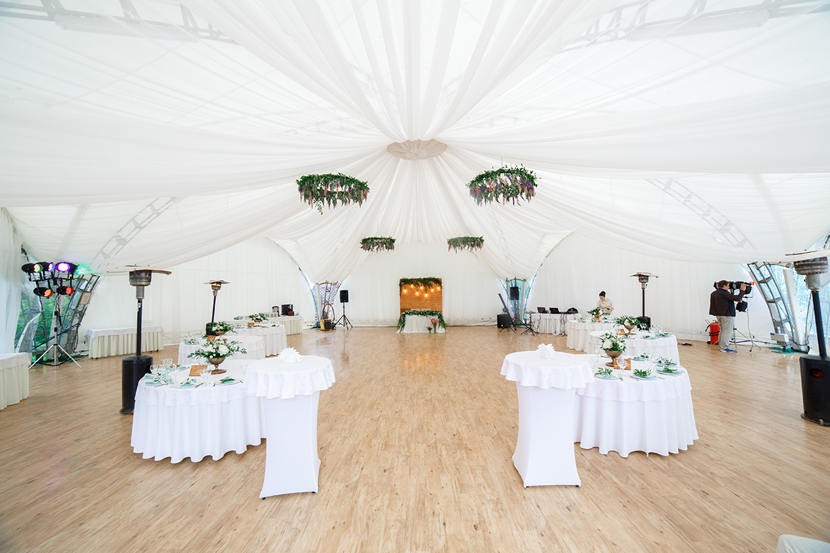 Малый шатер, площадью 260 кв.м., декорирован белоснежным текстилем. Идеален для проведения банкетных мероприятий в летнее время года (функционирует с 28 мая по 15 сентября). Расположен в уютном уголке, в окружении хвойного леса в небольшом отдалении от основного здания отеля.