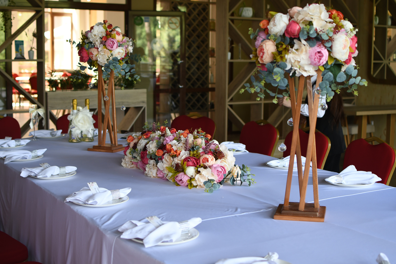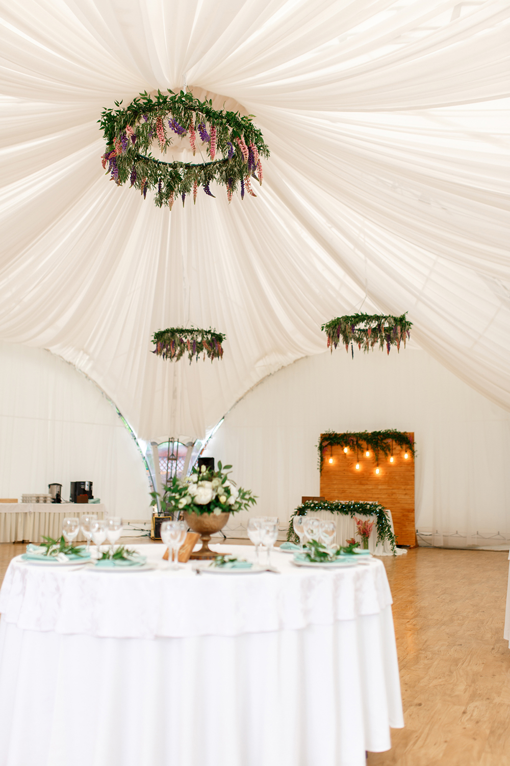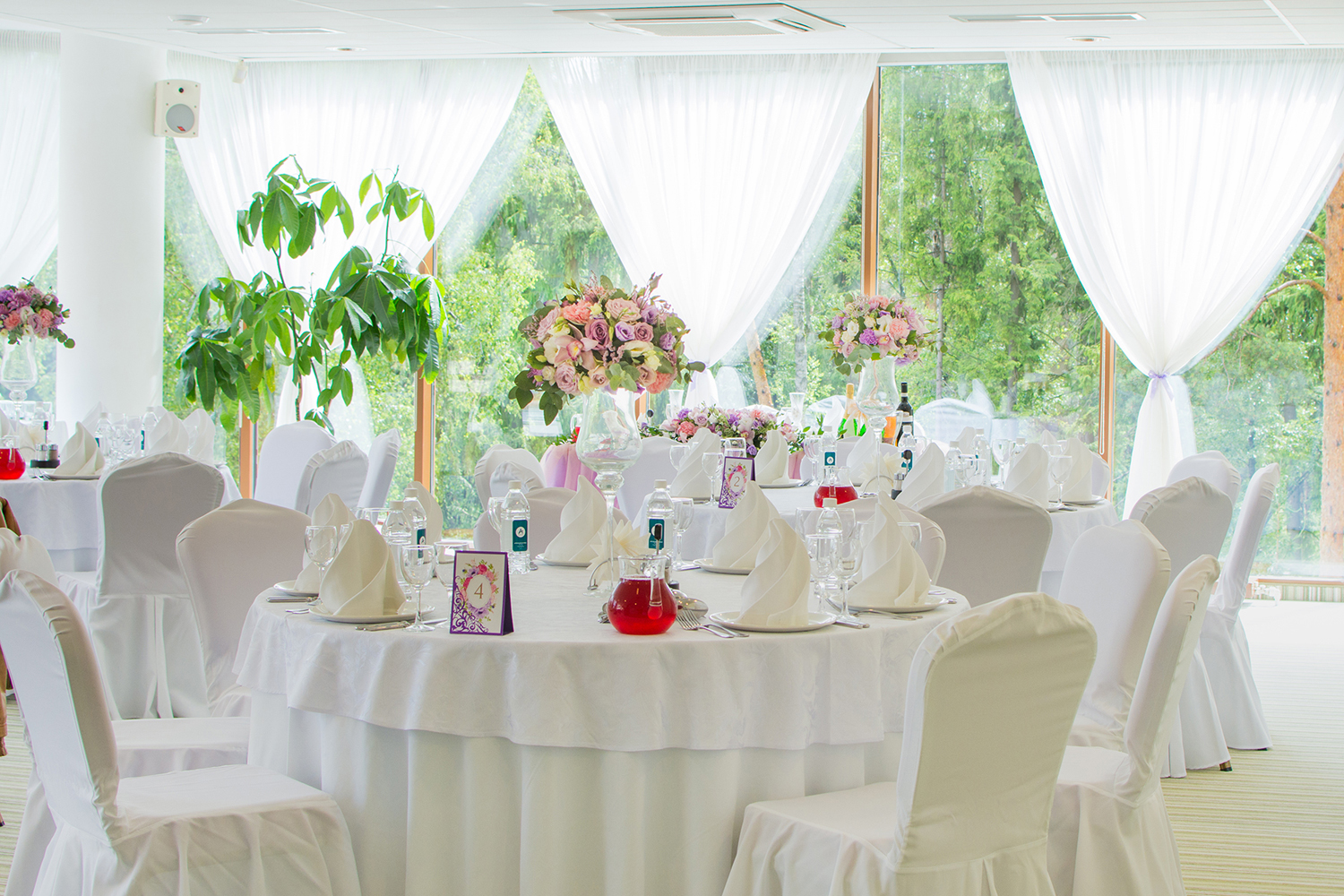 Малый шатер, площадью 260 кв.м., декорирован белоснежным текстилем. Идеален для проведения банкетных мероприятий в летнее время года (функционирует с 28 мая по 15 сентября). Расположен в уютном уголке, в окружении хвойного леса в небольшом отдалении от основного здания отеля.