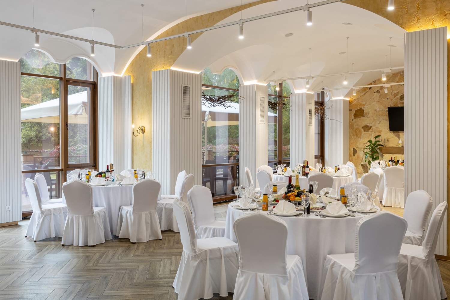 Тиса, Рона и Вена - идеальные залы для проведения конференций до 90 человек и банкетных мероприятий до 50 человек. Особую атмосферу создают панорамные окна из которых открывается замечательный вид на окрестности отеля.