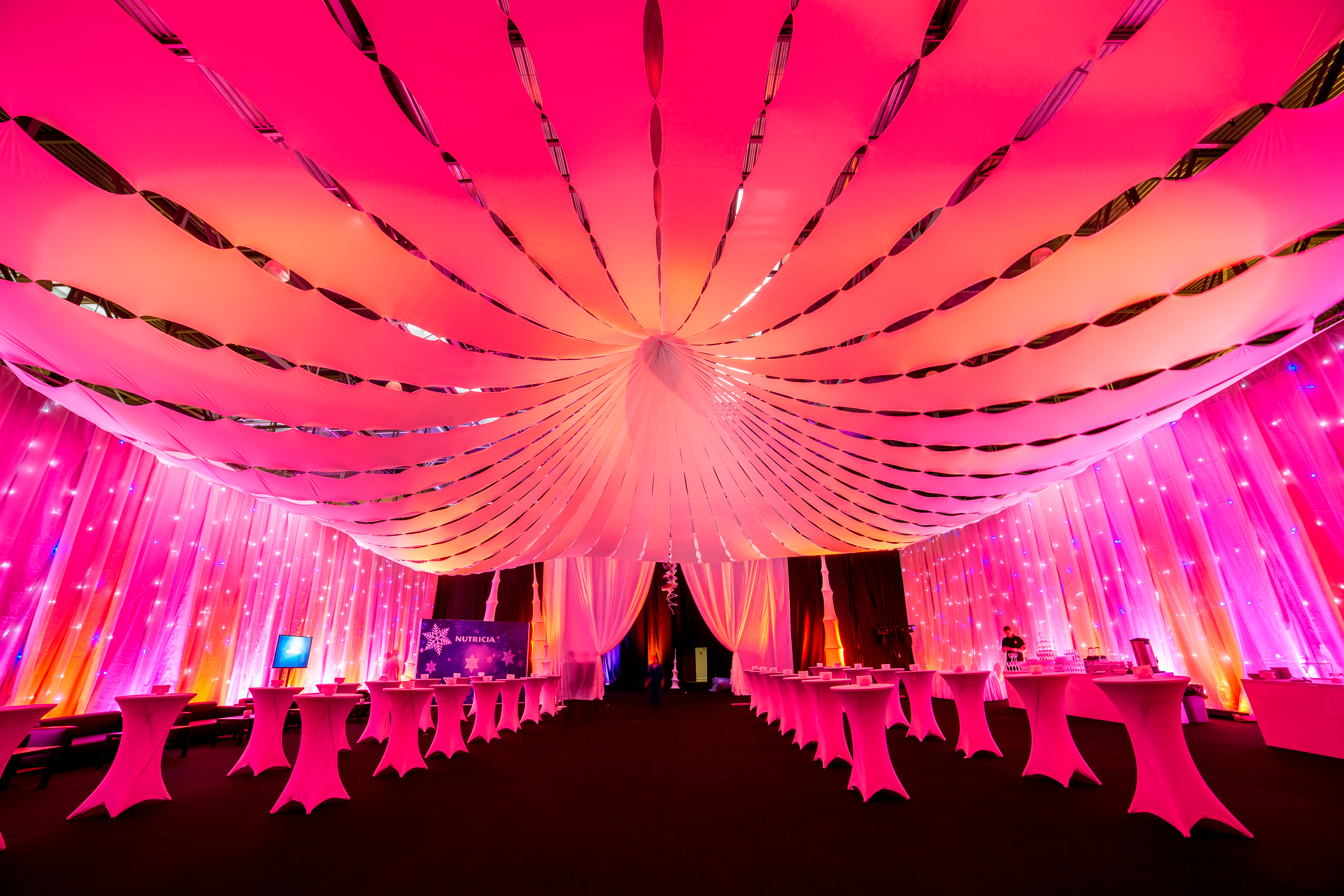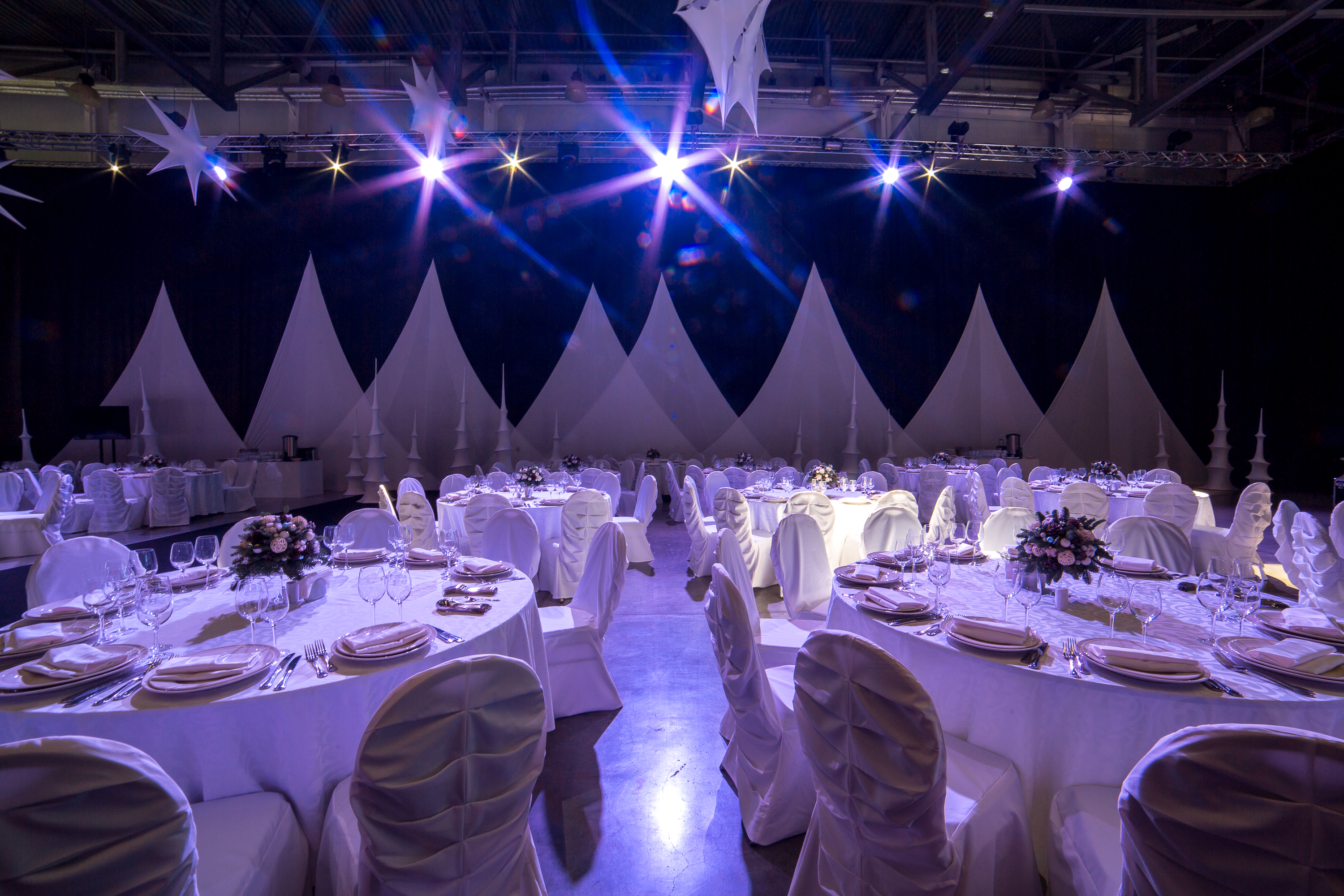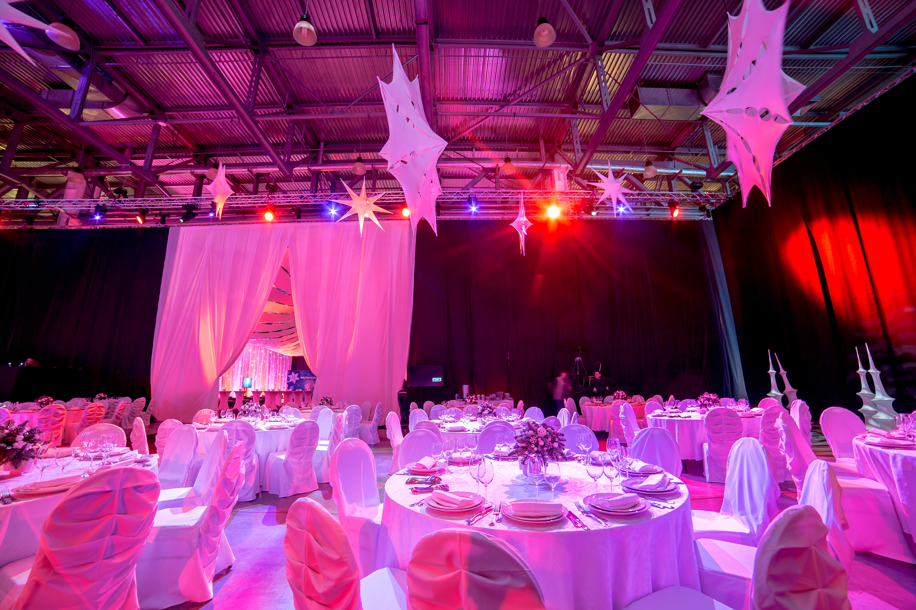 Все банкетные зоны оснащены сценой, танцполом, профессиональным световым и звуковым оборудованием, с возможностью исполнения любого, даже самого сложного технического райдера, гримерными комнатами. Пространство имеет возможность брендирования, размещения сценических конструкций, декораций любого масштаба.
