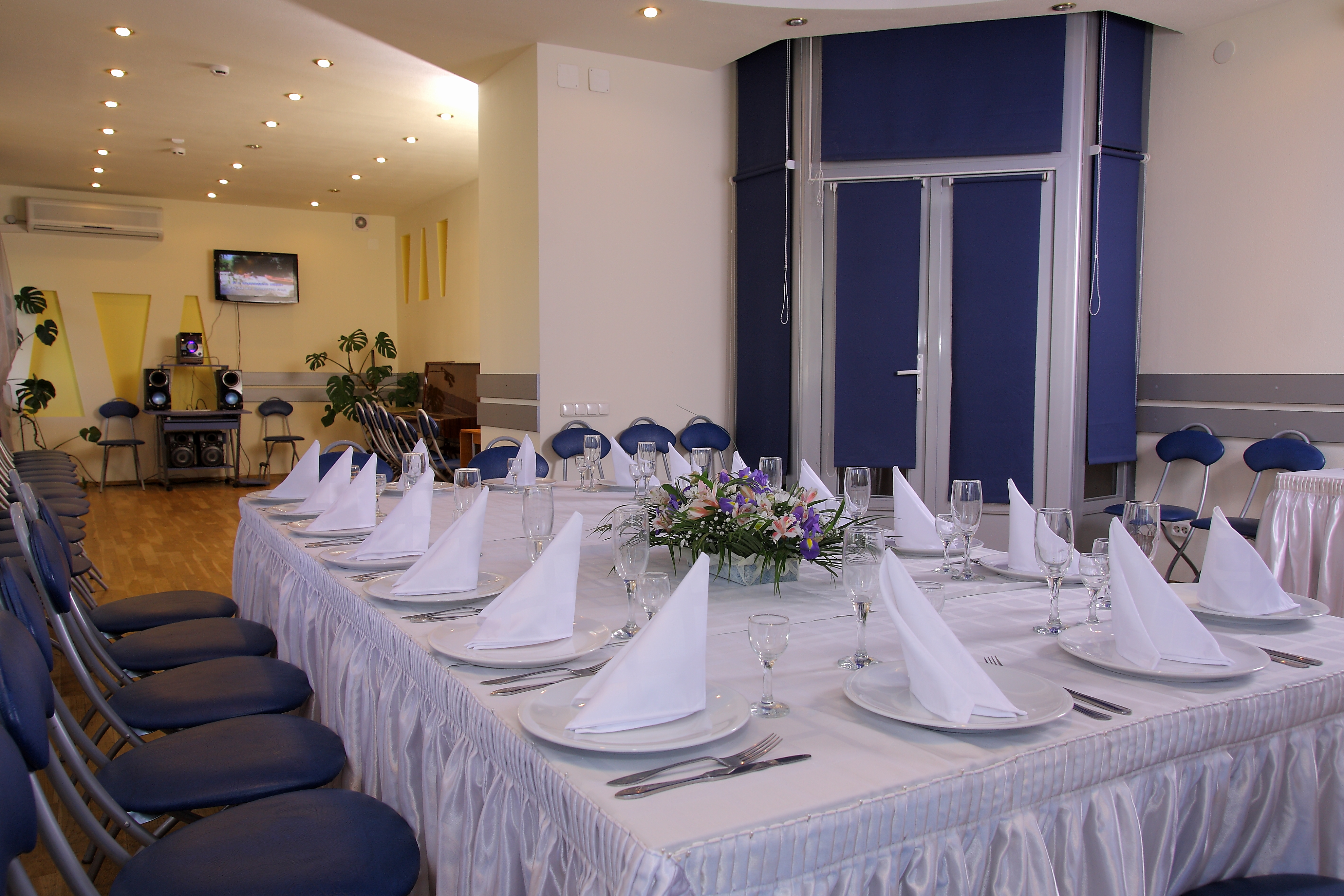 Наш банкетный зал идеально подходит как для проведения свадебного банкета или корпоративного праздника, так и для веселой дружеской вечеринки или банкета по случаю юбилея.