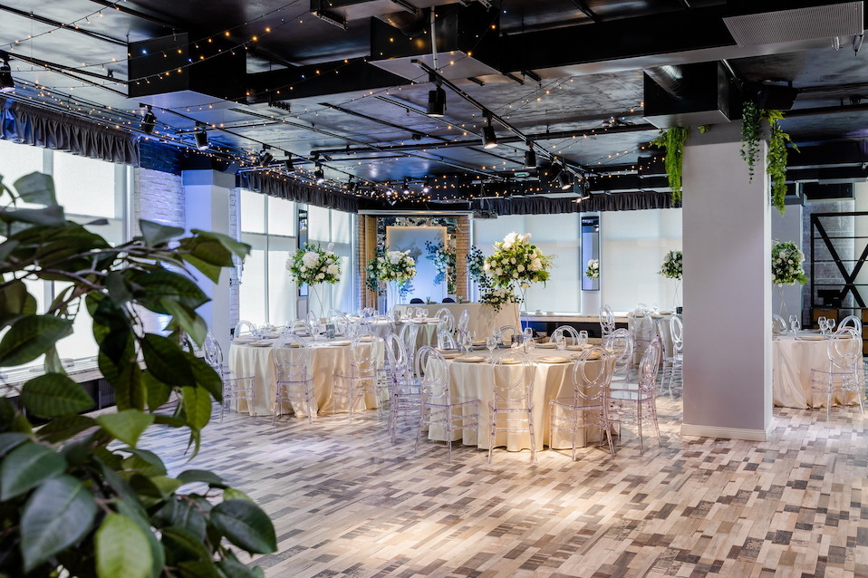Арендуя зал в банкетной площадке «Марсерия», гости получают яркую фотозону, большой экран для трансляций и световую подсветку — цвет устанавливаем на вкус гостей. Пространство дополнили сияющими звездами и оформили в универсальном стиле лофт. Команда зала приготовила широкий список дополнительных услуг: у нас можно заказать фотобудку или дым для волшебного танца «в облаках». Для маленьких гостей обустроим аккуратный уголок с раскрасками.