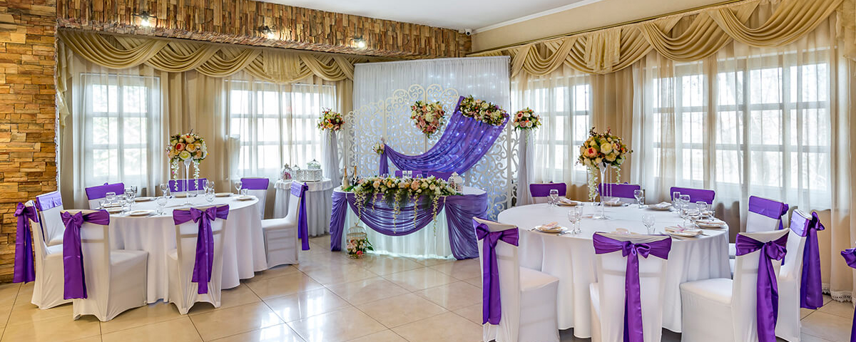Банкетный зал «Валенсия» притягивает взгляды проходящих и проезжающих мимо людей: за живой изгородью из виноградной лозы просматривается отдельно стоящий особняк с зеленой лужайкой перед входом, с водопадом и фонтаном в обрамлении живых цветов.