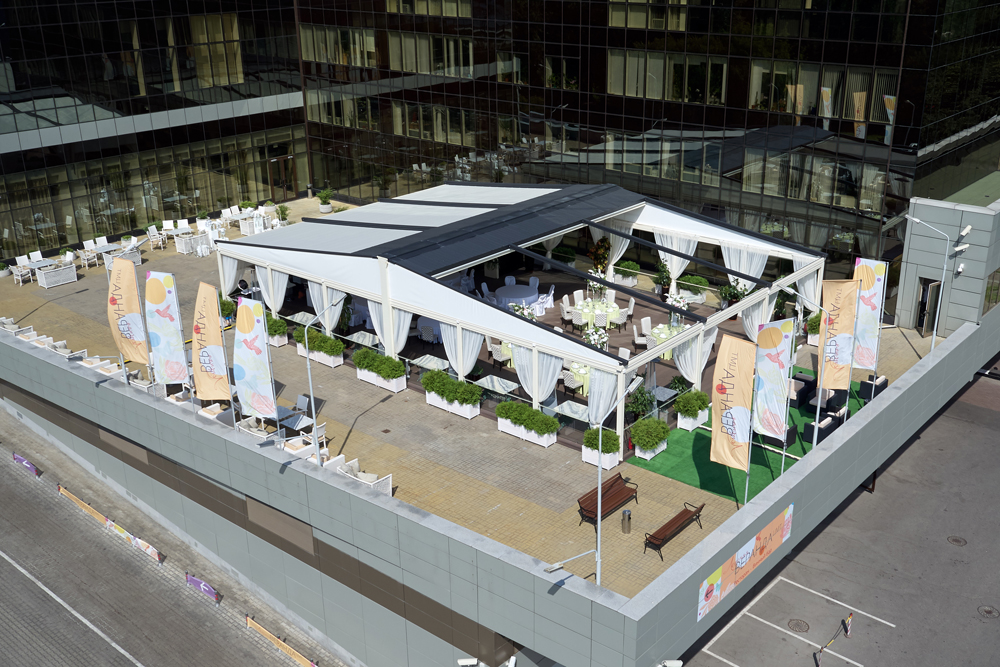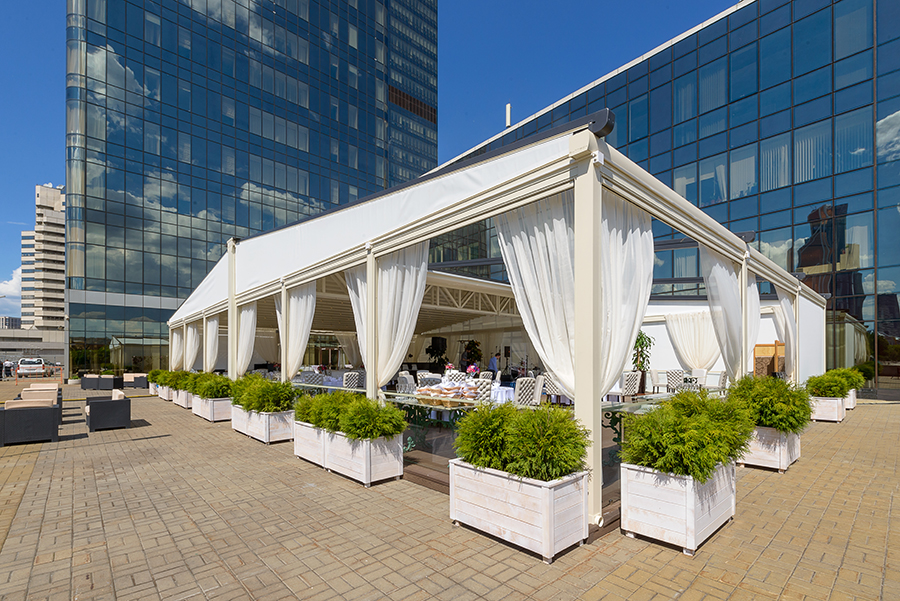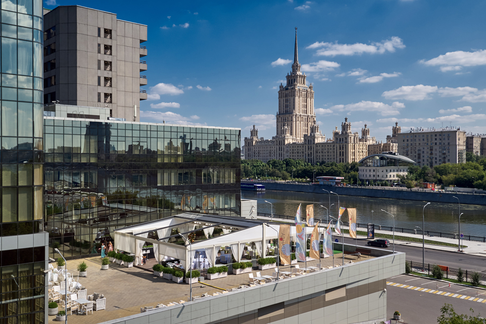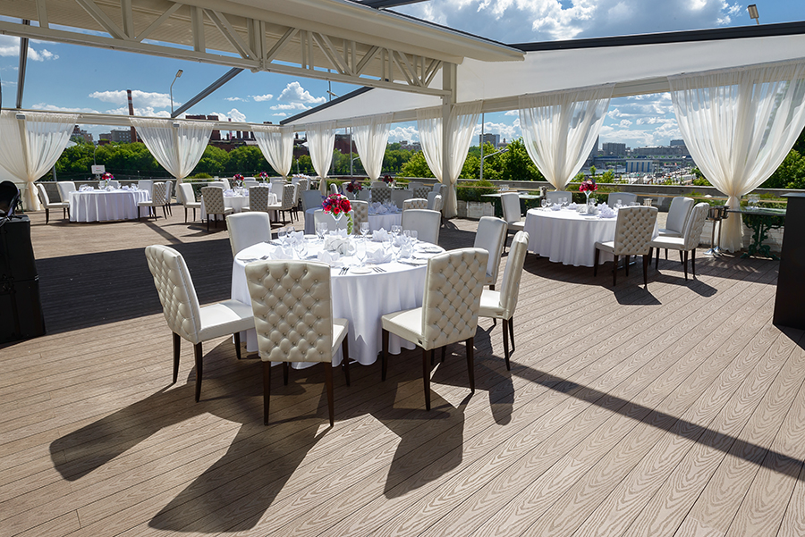 С нами вы можете организовать торжество в рамках одной локации — панорамные залы, летняя веранда, премиальный банкетный сервис, номера для молодожёнов в отеле 5*, удобная транспортная развязка и захватывающие виды на Москву.