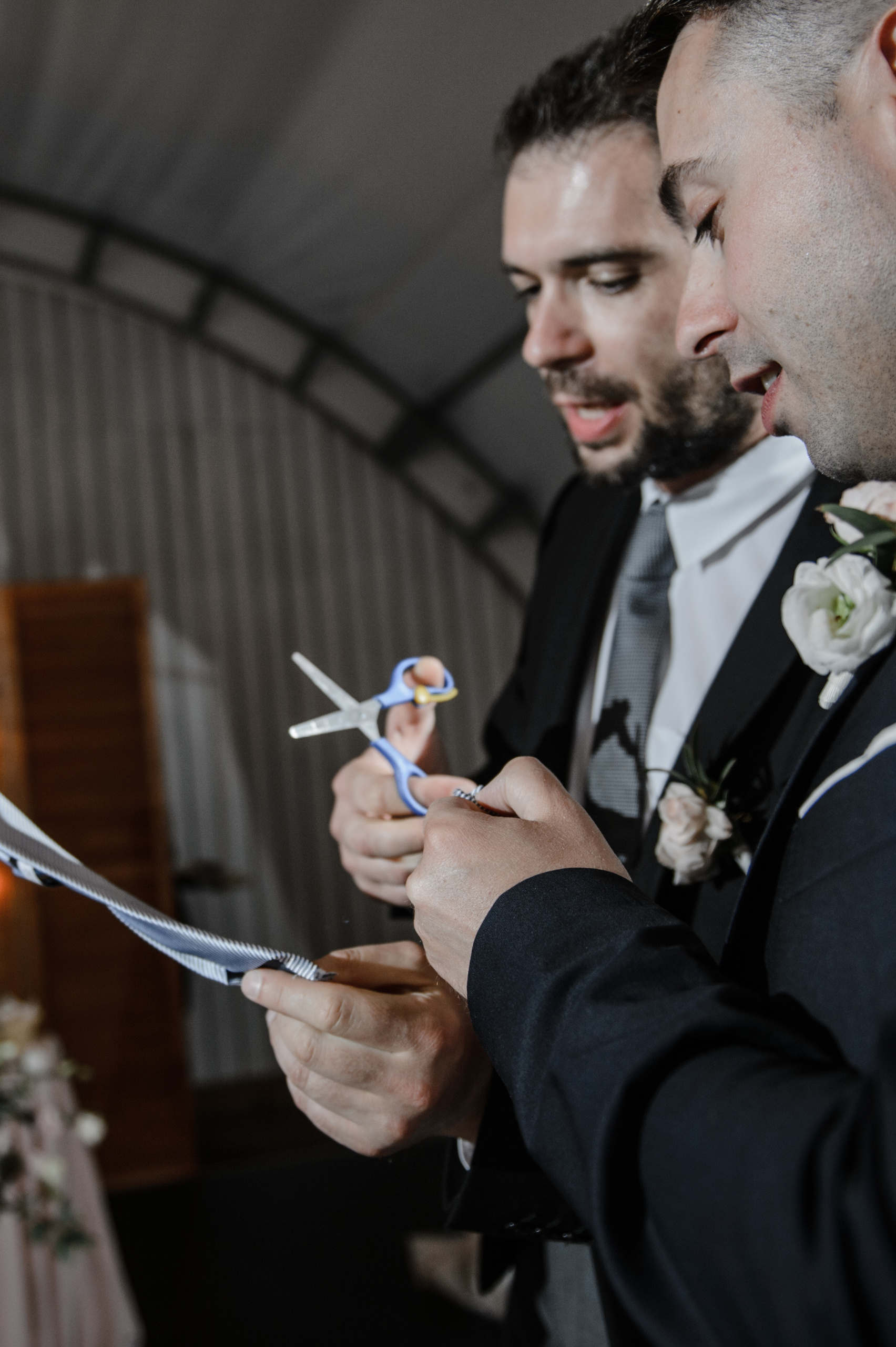 Традиция с галстуком имеет не менее интересную историю. В древности считалось, что предметы одежды жениха обладают особой силой. Гости старались оторвать кусочек его наряда «на память» — якобы это приносило удачу. Чтобы не остаться в клочьях к концу праздника, женихи стали приносить запасной галстук, который потом разрезали на части для всех желающих.