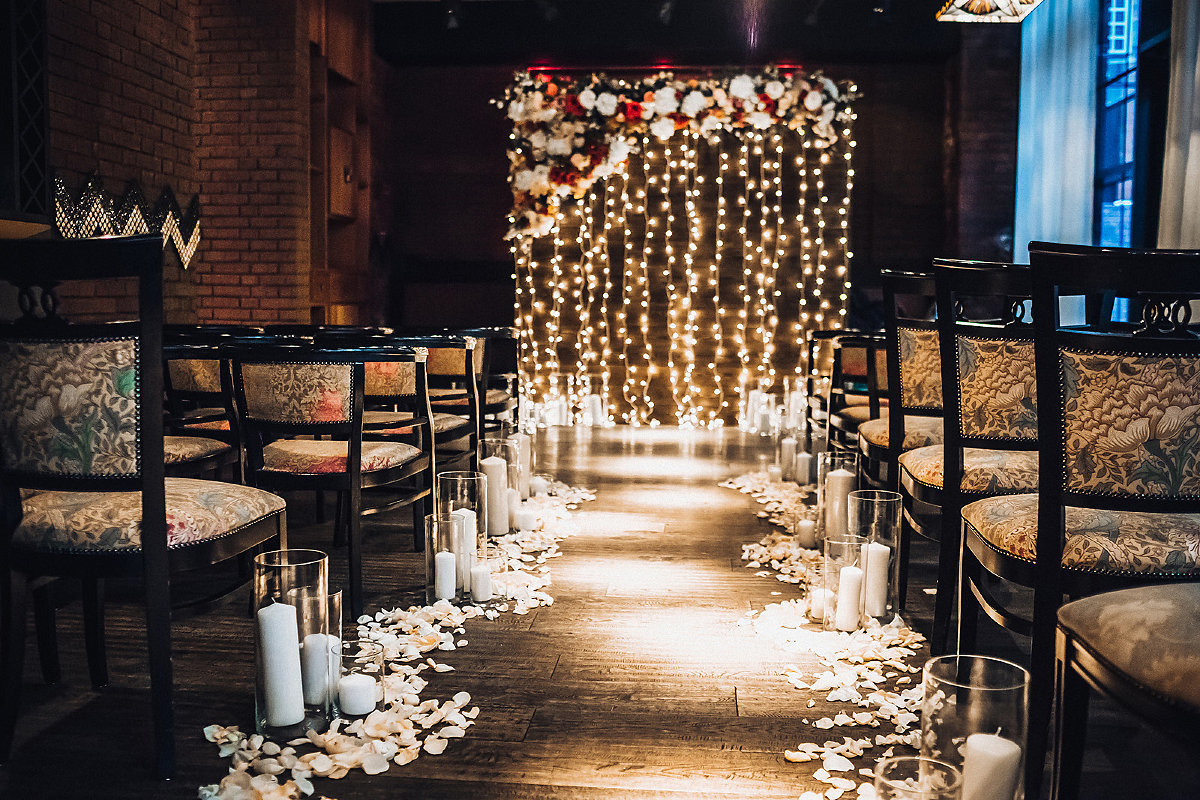 Один из самых запоминающихся примеров — история Егора и Алины, которые выбрали для торжества лофт с высокими потолками и огромными панорамными окнами. За стеклом кружил первый снег, а внутри гостей ждал ужин при свечах, горячий сидр и живая музыка. Вместо традиционного первого танца пара устроила мастер-класс по свингу — и к полуночи все танцевали, забыв о ноябрьской непогоде за стенами.