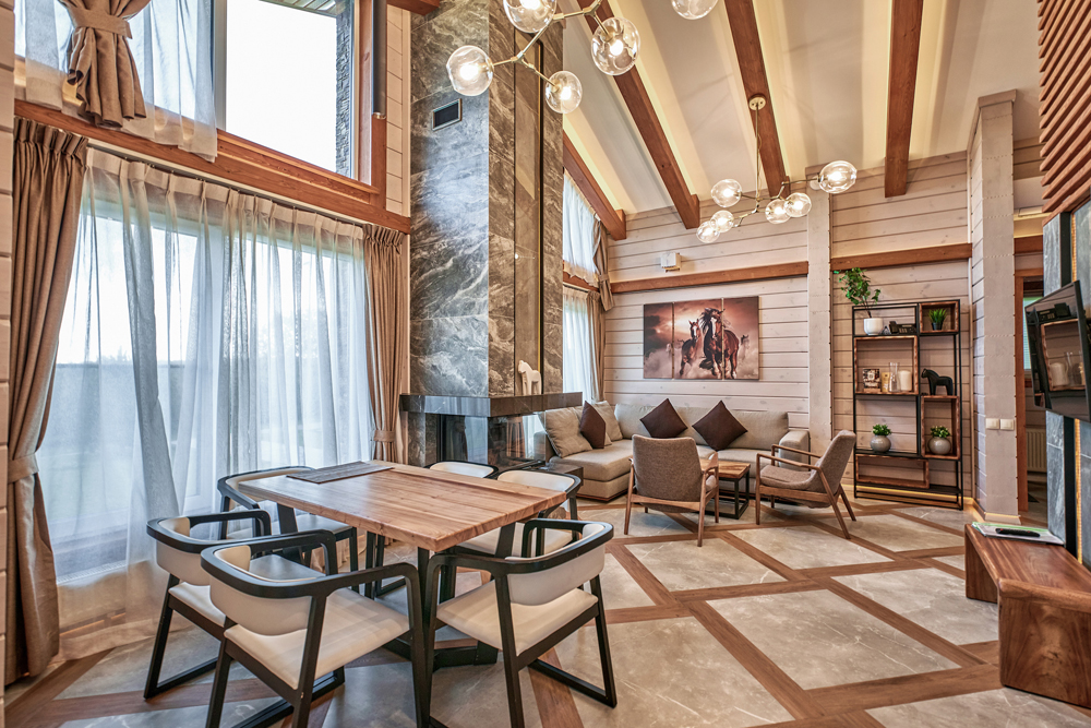 - Терраса во внутреннем дворике – крытая, с обогревом и уютной атмосферой, идеальна для летних вечеринок и неформальных встреч.