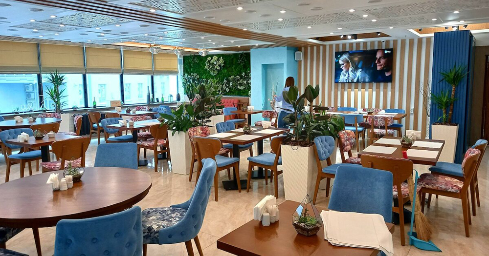 - Стильный интерьер — панорамные окна, элегантный дизайн и продуманное освещение для любого формата: от делового обеда до вечернего фуршета.
