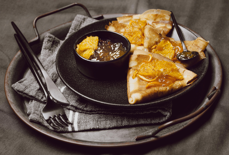 Среди сытных вариантов — блины с начинкой, вдохновлённой мексиканскими пирожками эмпанадас. Это фарш из говядины с жареным луком, яркими специями и сливками для нежности. Также в меню есть блины с авокадо — ключевым ингредиентом мексиканской кухни. Их дополняют лососем, сыром креметта и тонко нарезанным огурцом.