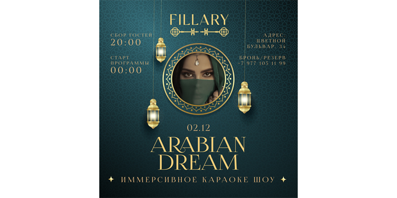 Магия сказок «1001 ночи», манящие глубокие восточные ароматы, глаза полные страсти и нежности - все это неповторимая атмосфера арабской ночи в «Fillary Restoran & Karaoke»