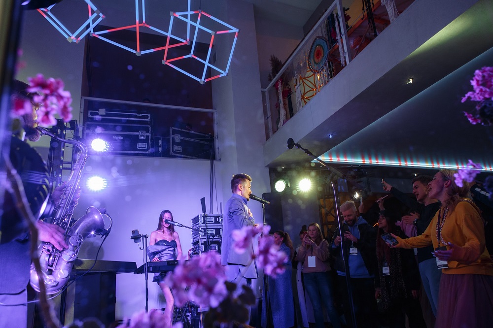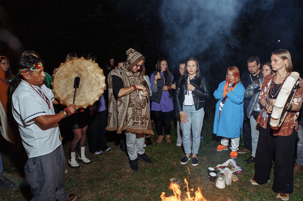 Площадь двух домов позволила нам разделить пространство для разных направлений – сцена с огромным экраном, свет и звук, фуршетные линии с невероятным количеством разнообразных закусок и канапе, лимонадов, морсов, эко-магазин, фотозоны, массаж, аэротату, скетчи с фотографий, роспись мехенди, казино, настольные игры, шоурум одежды, зеркальная фото станция. В доме самопознания, малом шале, прошли духовные практики – гвоздестояние, чайная церемония с эфирными маслами, китайская чайная церемония, энерготерапия, биоэнергодоска, массаж, аромадиагностика и создание ресурсного аромата, мастер-класс на перуанских бубнах и древних музыкальных инструментах, обряд на усиление связи с землей, подношение огню.