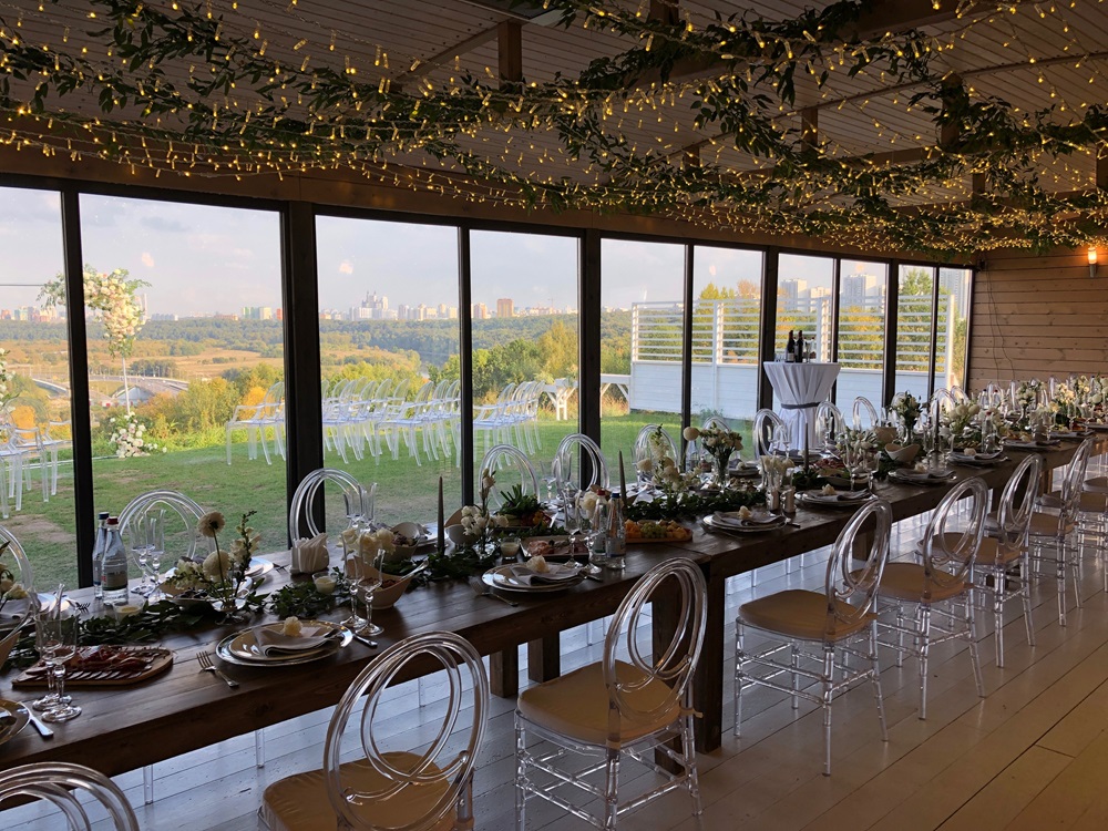 - Невероятная локация — не надо уезжать за город, природа и потрясающая панорама Москвы — естественная декорация торжества.