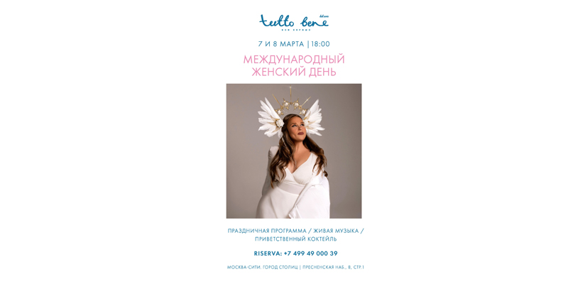 В сам праздник 8 Марта для гостей будут звучать лучшие песни о любви, красоте и женщине в исполнении пианиста-импровизатора Виктора, шикарной дивы Lualy в сопровождении саксофониста и певца Артура Рафина, легко миксующего мелодический брит-рок, фанк, блюз-рок и диско. Продолжится праздничный ужин классными dj-сетами, танцами и караоке в специальном зале Enoteca.