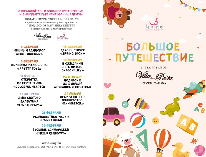 Ресторан Вилла Паста на ул. Большая Дмитровка приглашает в гости детей с родителями. Для маленьких посетителей в течение февраля у нас запланированы развлекательные детские программы и мастер-классы.