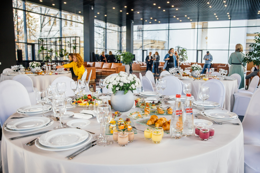 Зал 500 кв.м. украшен живыми растениями, оборудован мягкой мебелью и зоной для размещения кейтеринга. Профессиональное оборудование позволяет провести здесь вечернюю дискотеку, шоу-программу или устроить концерт живой музыки.