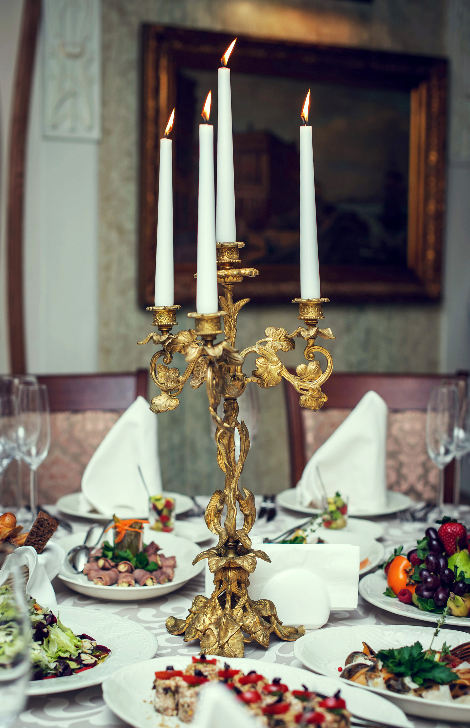 Для меню ресторана отобраны популярные блюда европейской кухни и традиционные русские рецепты, в том числе из известной книги Елены Молоховец. Среди блюд есть деликатесы из мяса и рыбы, на гриле готовят осетра и стерлядь (по предзаказу).