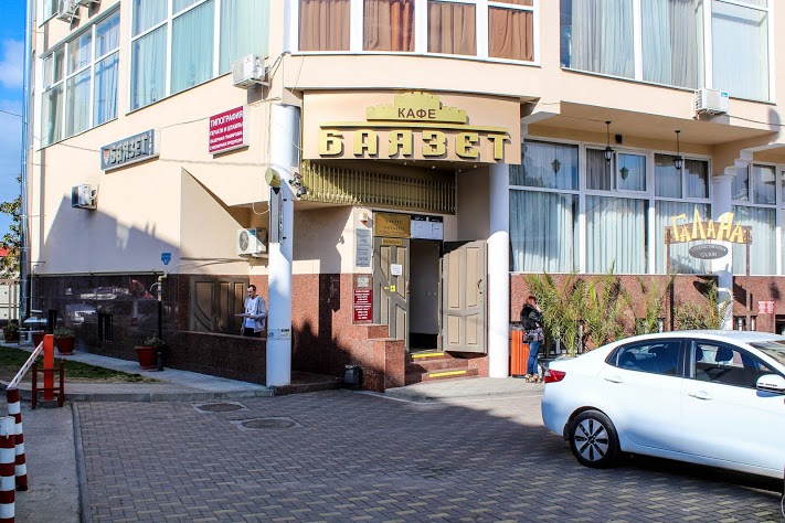 Кафе «Баязет» находится вместе, где сходятся сразу три улицы: Ромашек, Молокова иЖемчужная. Неподалеку, вдоль улицы Куйбышева, есть уютный сквер, где можно прогуляться после сытного обеда.