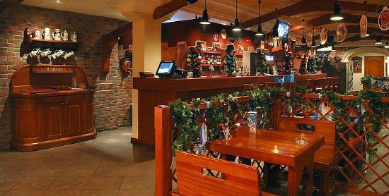 Один из залов ресторана напоминает баварскую гостинную, а во втором есть и небольшая зона с библиотекой, в которой собраны старые издания книг, и бар с большой коллекцией плакатов на тему "Октоберфеста" - знаменитого праздника пива, и охотничий уголок с оружием и гравюрами на охотничью тему.