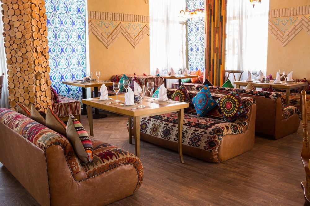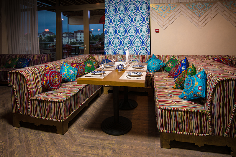 Чайхана.Инжир — место встреч длядружеских встреч, деловых переговоров исемейного отдыха, где наслаждаются восхитительным пловом, шашлыком, бесконечными пиалами зеленого чая идурманящим дымом кальяна.