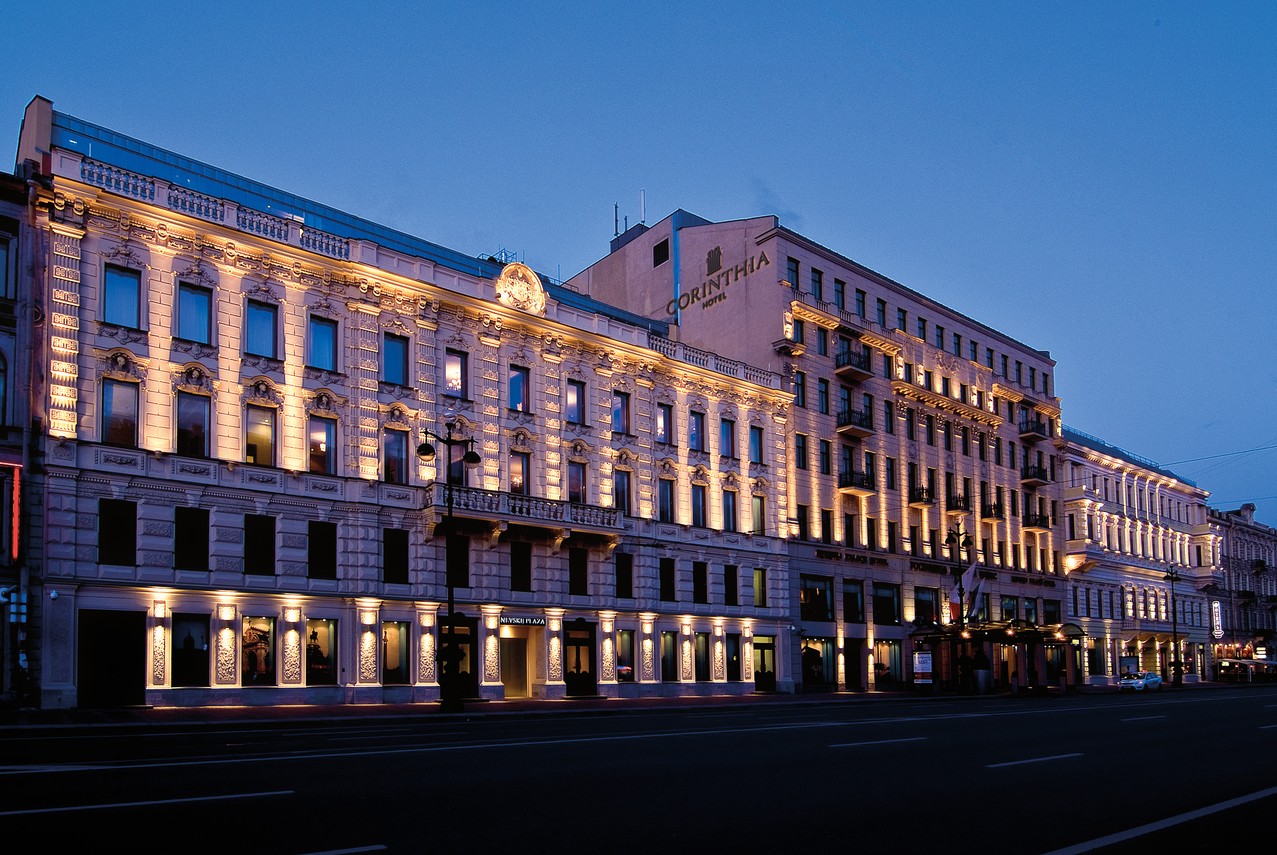 Отель «Коринтия Санкт-Петербург» является результатом полной реконструкции двух исторических зданий XIX столетия, восстановленных в их былом великолепии. Единство красоты, роскоши и изящества интерьера отеля идеально сочетается с величественной архитектурой города. Расположенный в сердце города, на Невском проспекте, главной магистрали города, отель “Коринтия Санкт-Петербург” находится в непосредственной близости от знаменитых архитектурных и исторических памятников, включая Эрмитаж, Исаакиевский собор, Спас-на-Крови, Петропавловская крепость, Русский музей, Казанский собор, Александро-Невская Лавра. Отель расположен вблизи главных петербургских театров, бизнес и торговых центров, различных баров, ресторанов и ночных клубов.