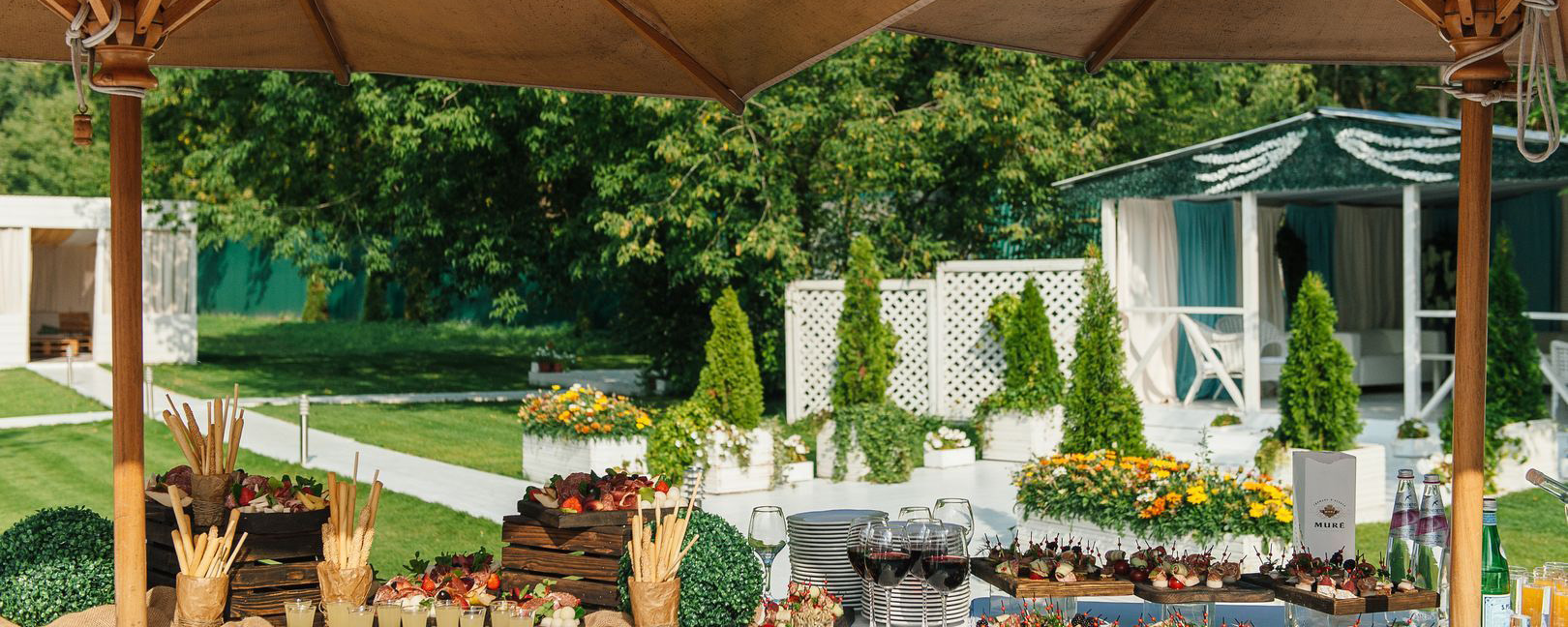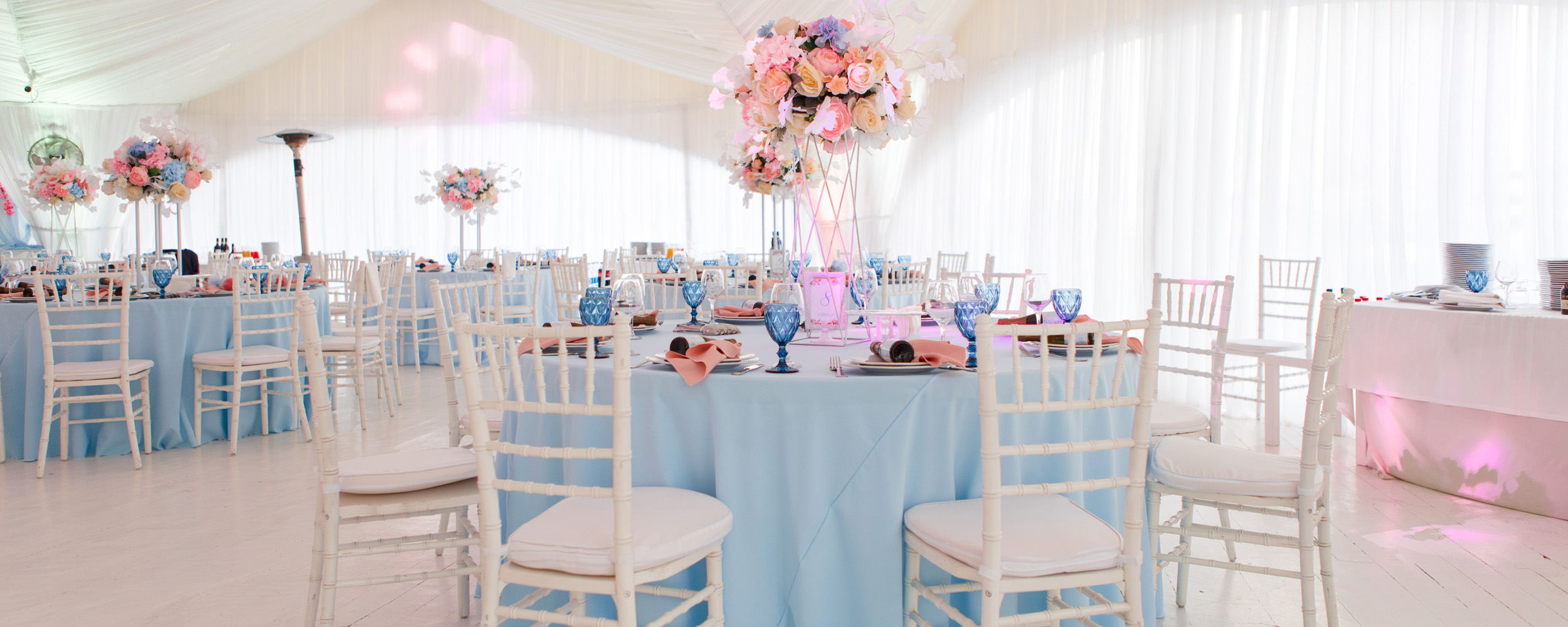 • Мебель: банкетные столы, коктейльные столы, фуршетные линии, стулья кьявари, скатерти на столы, напероны, салфетки, мебель на веранде: диваны, кресла, зонты.
