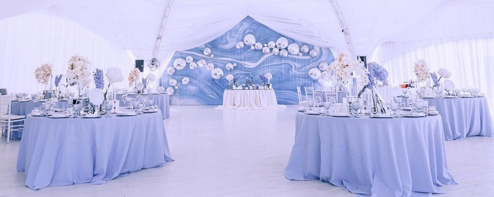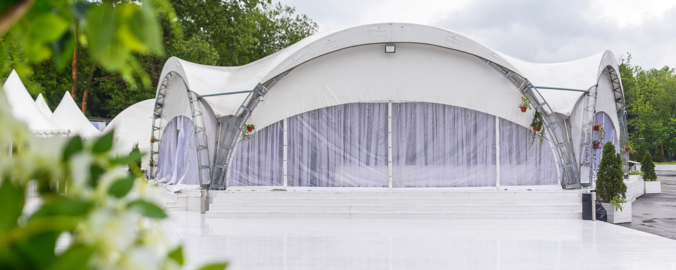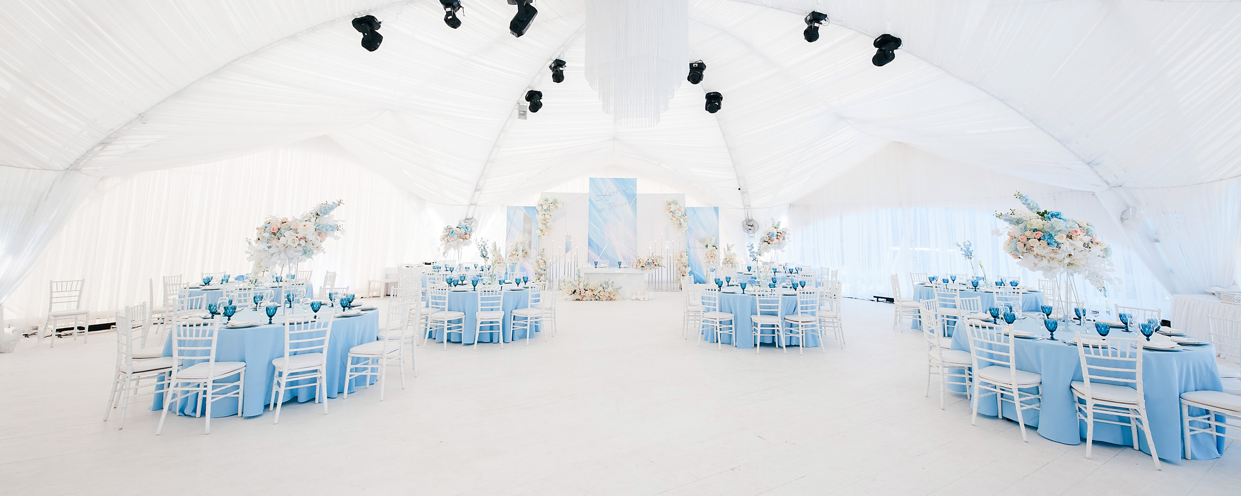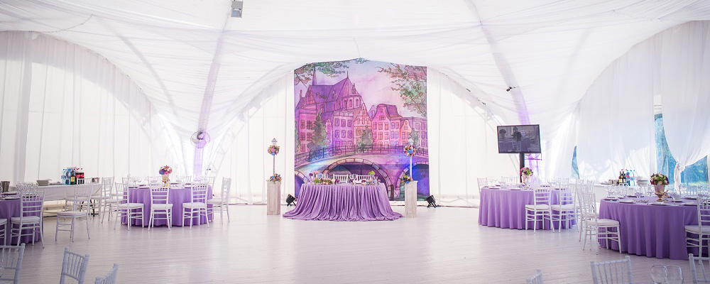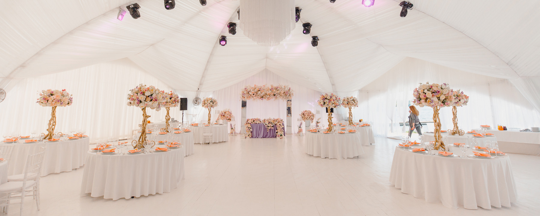 • Аренда шатра для свадьбы, вместимость которого составляет 160 человек, а площадь – 340 м2