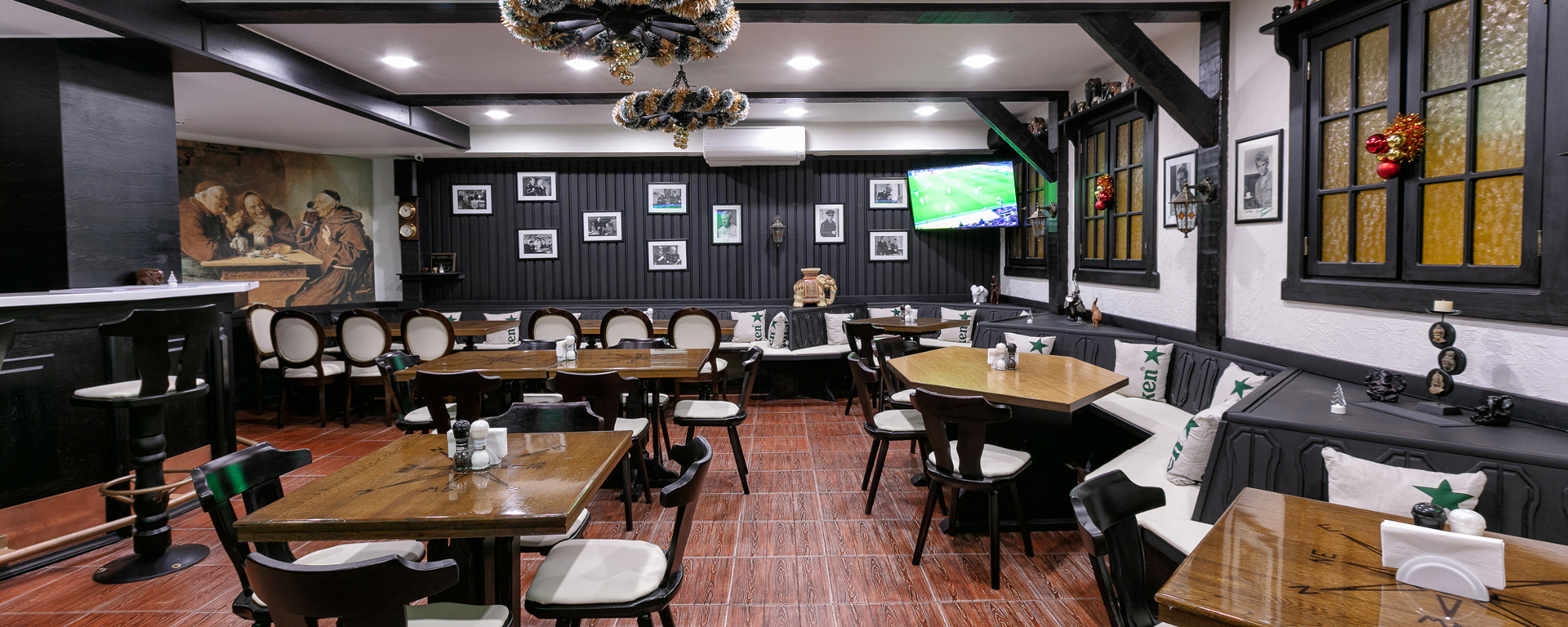 Уютный ресторан, непринуждённая атмосфера. Все помнят фильм "Семнадцать мгновений весны", где Штирлиц встречался со своей женой в ресторанчике "Элефант", мы решили это обыграть в интерьере нашего ресторана.