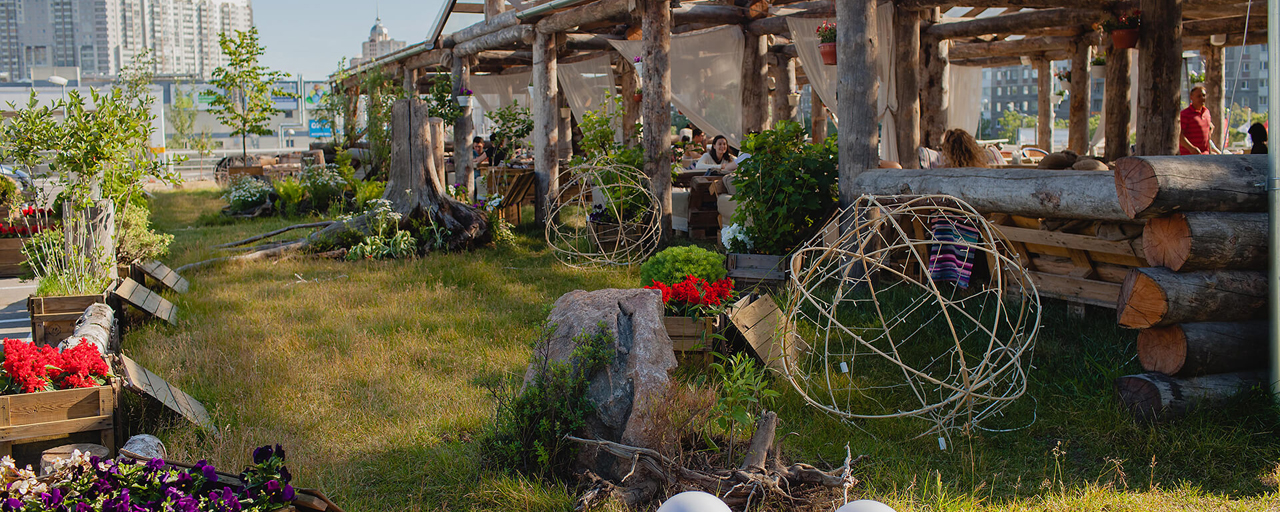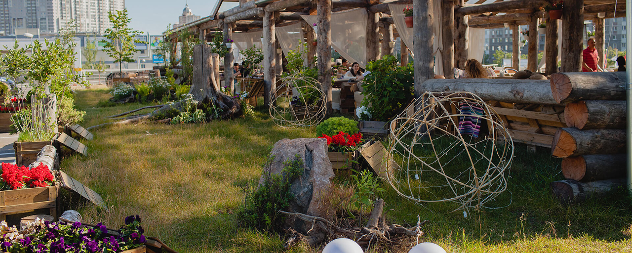 Те, кто не успевает за город, могут расположиться у нас на веранде, которая стала оазисом торгового комплекса на Коломяжском проспекте.
