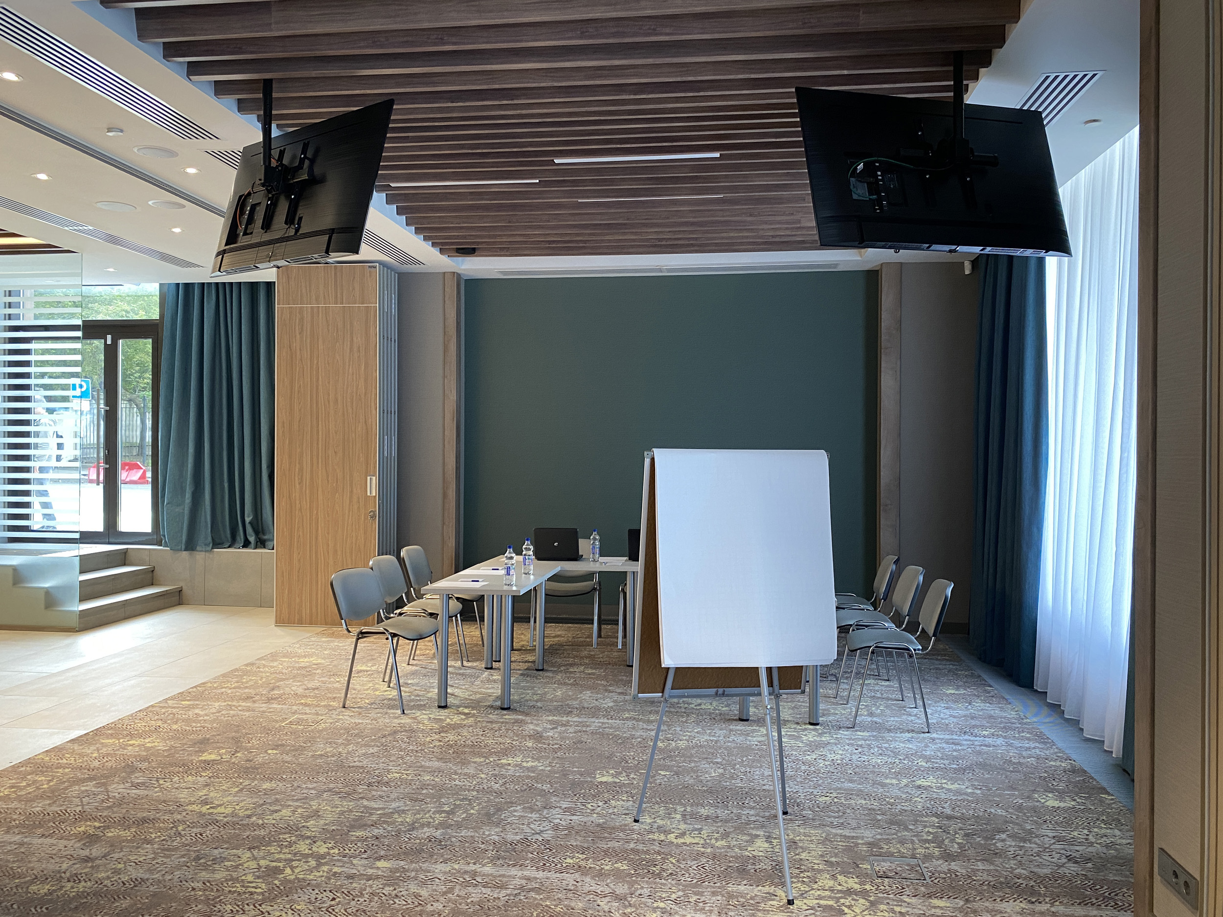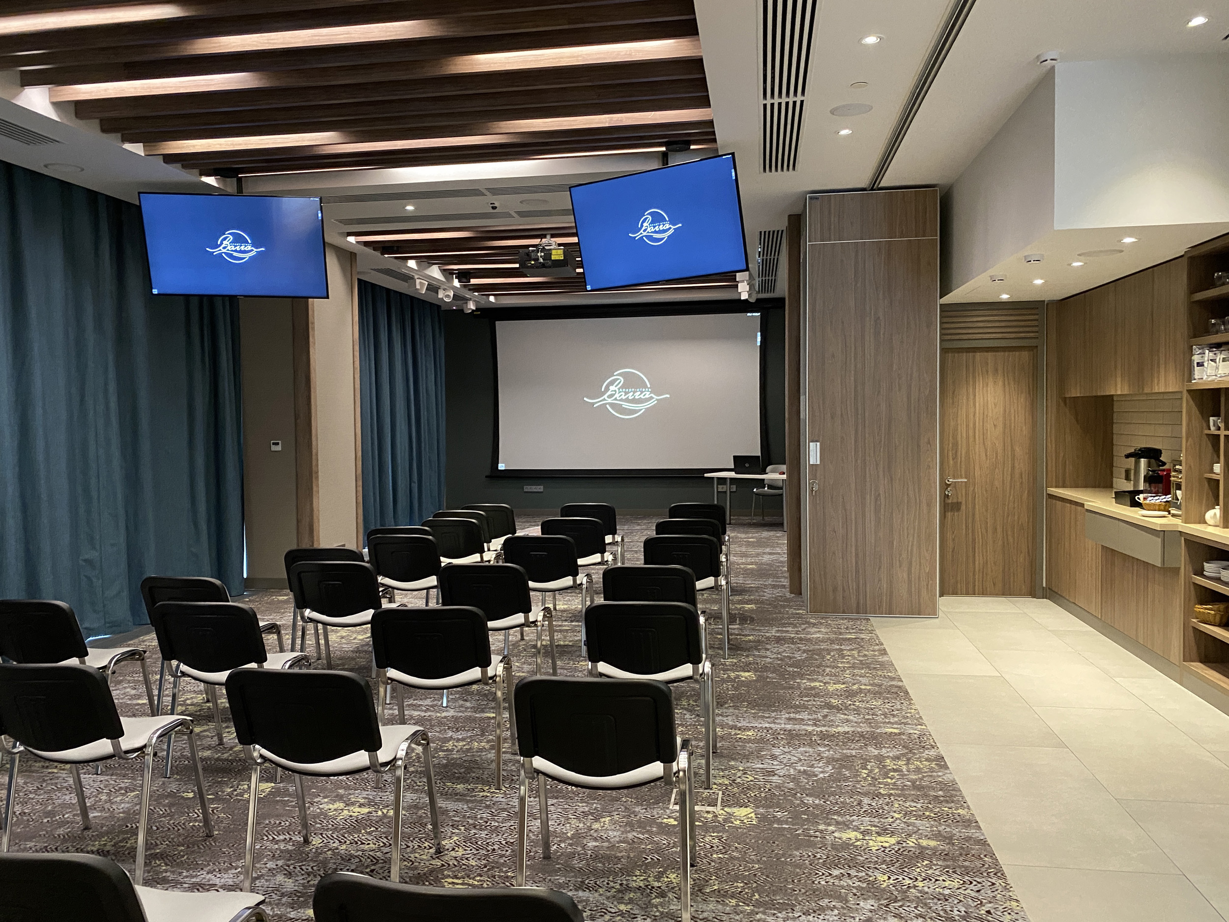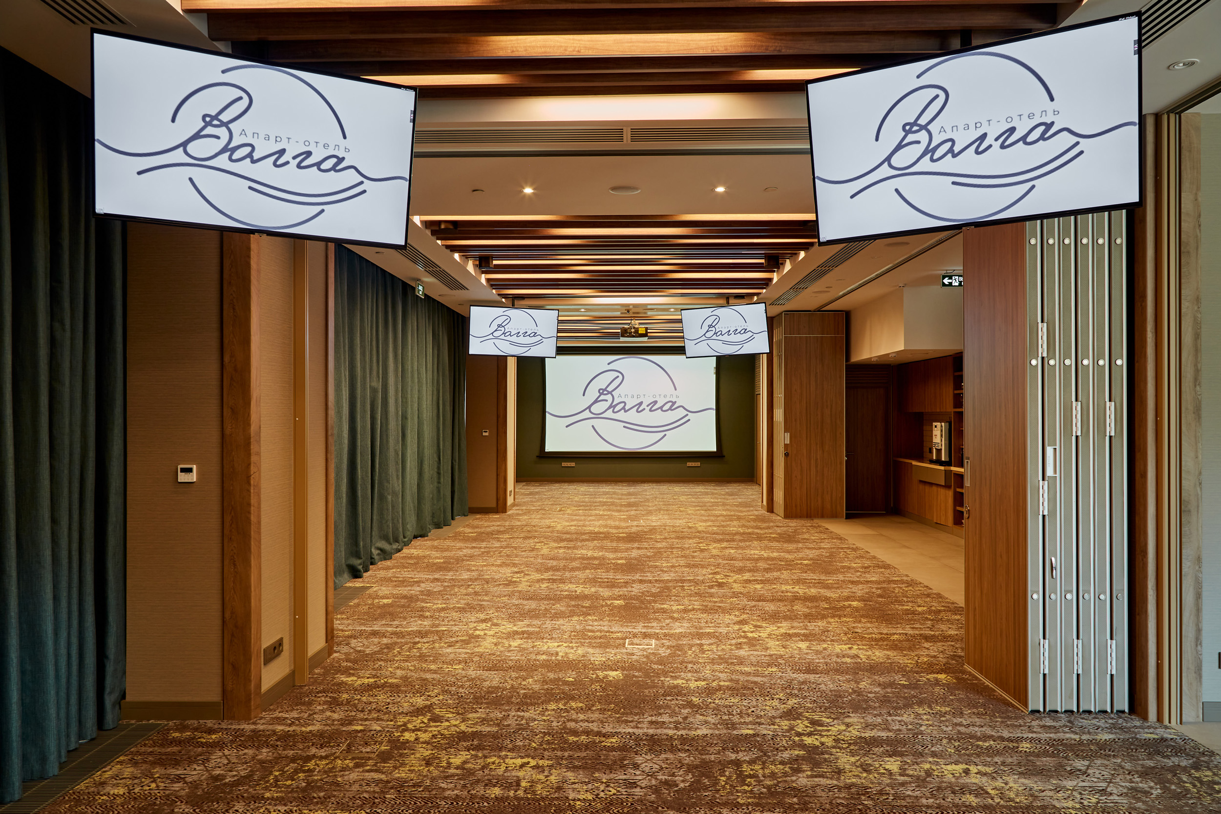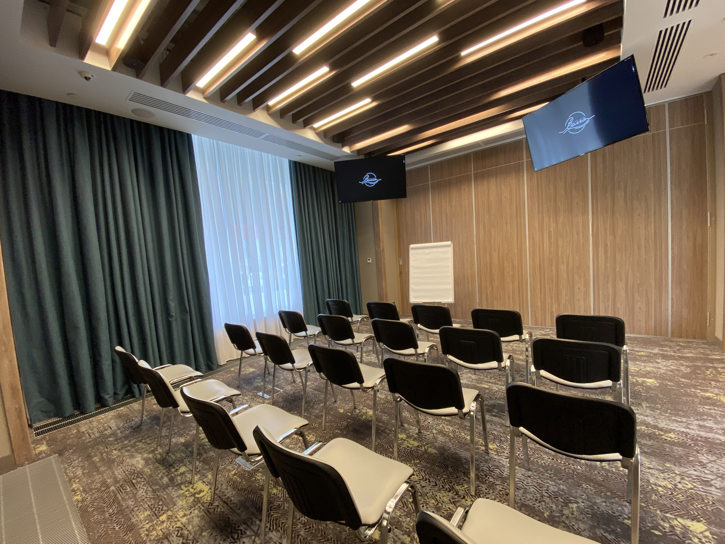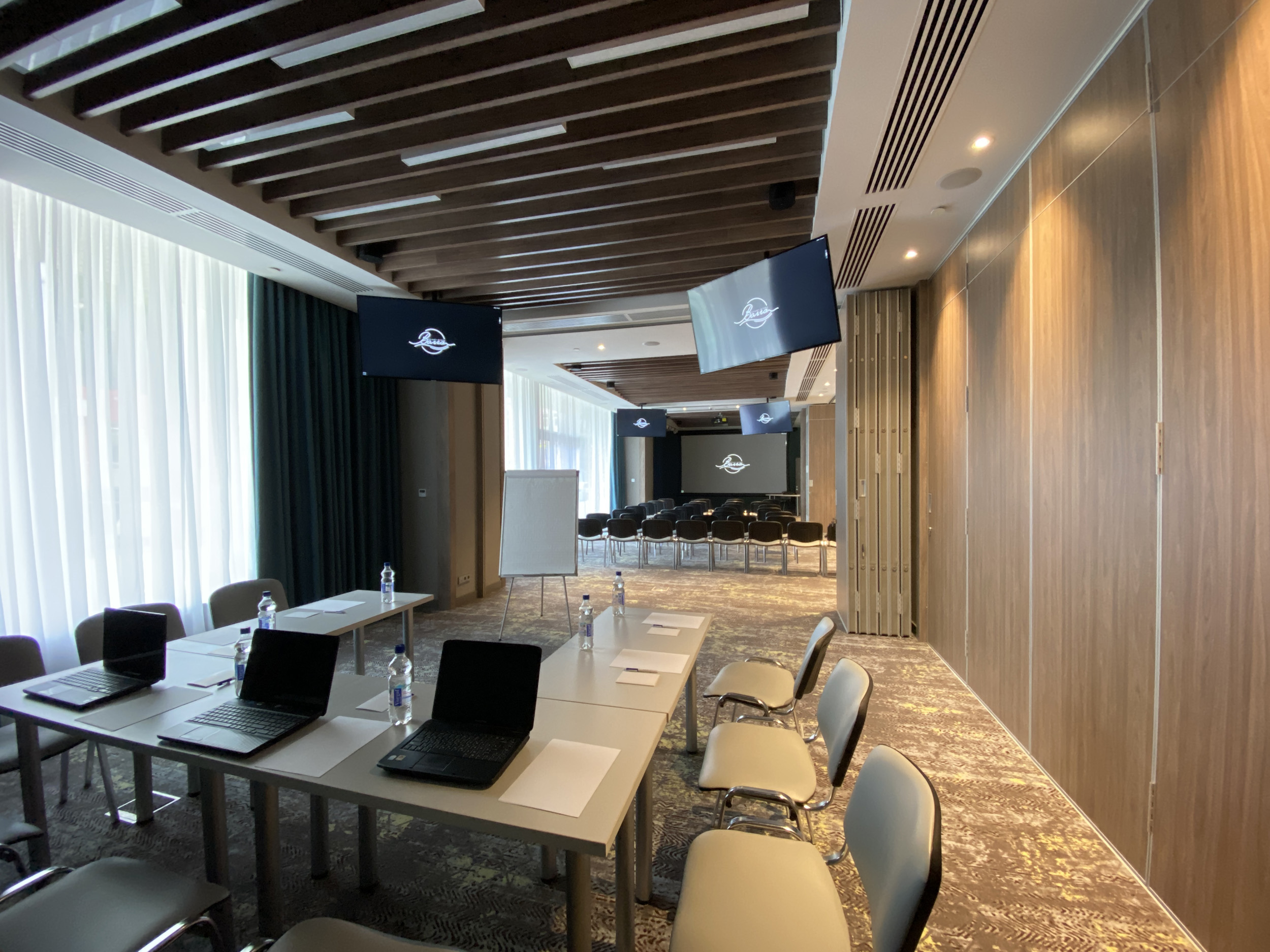 Мультимедийное пространство, которое с помощью мобильных перегородок имеет возможность трансформации под различные события и цели - от конференций, симпозиумов, бизнес-переговоров до банкетов, торжественных приемов и арт-ярмарок.