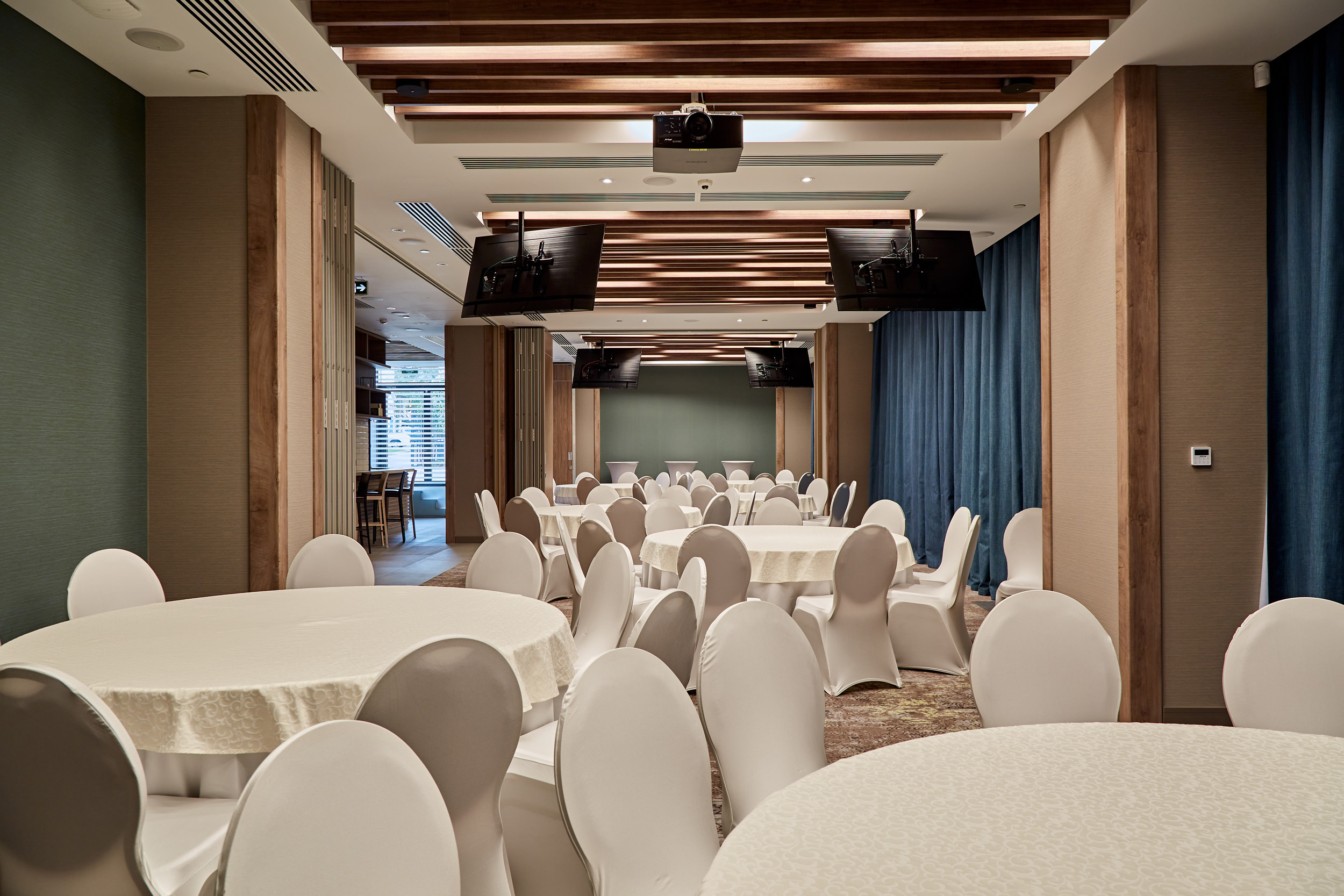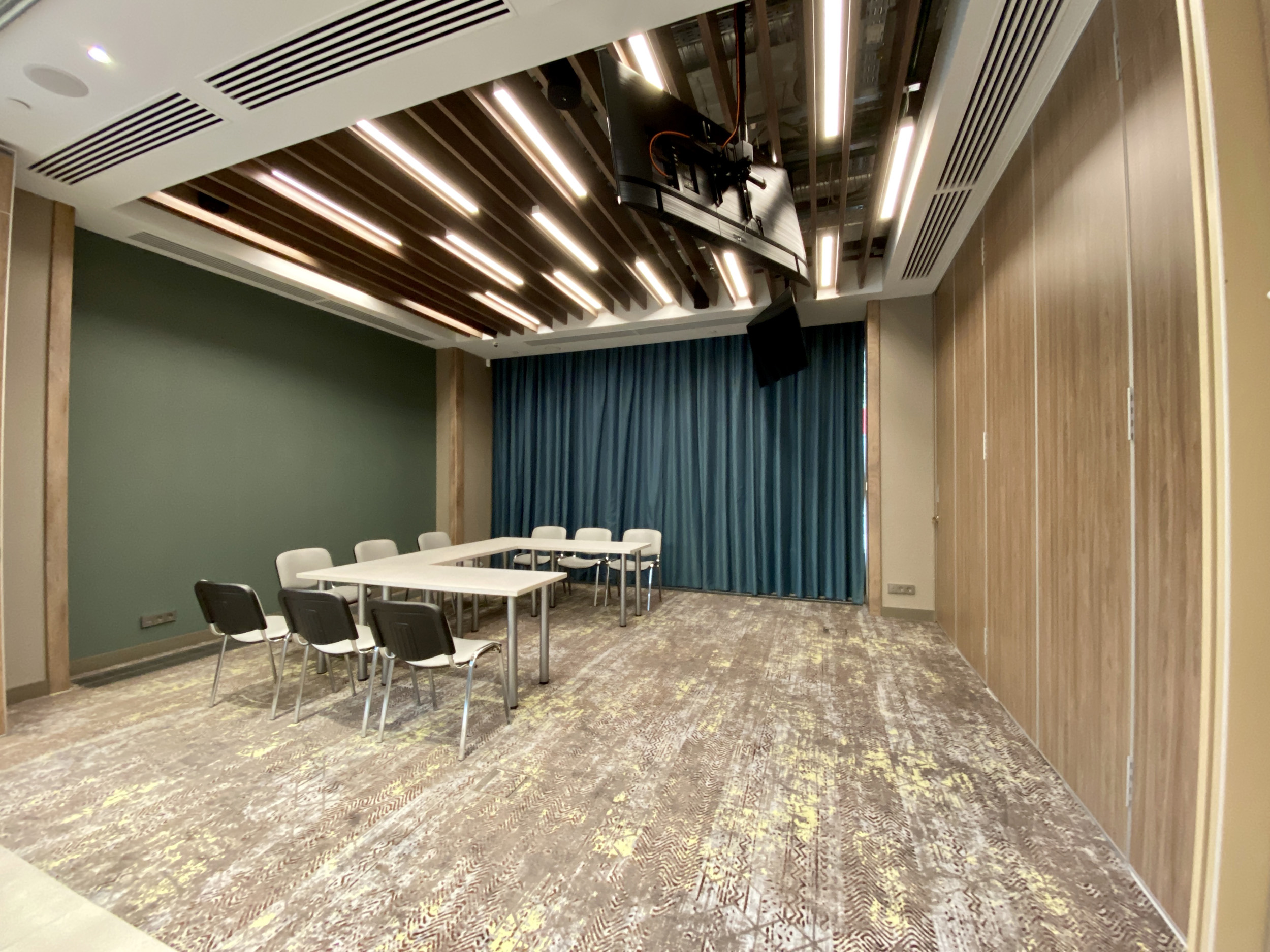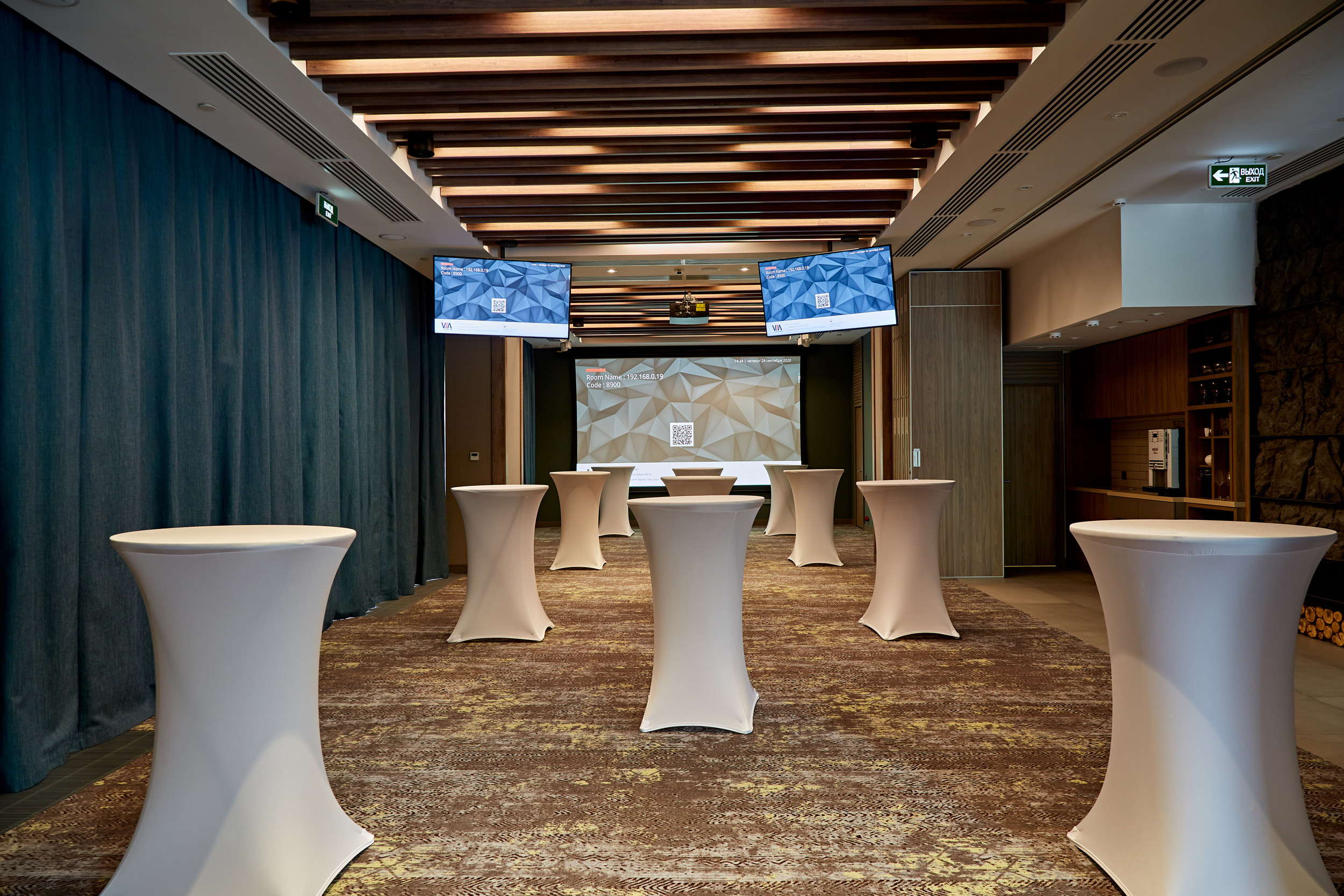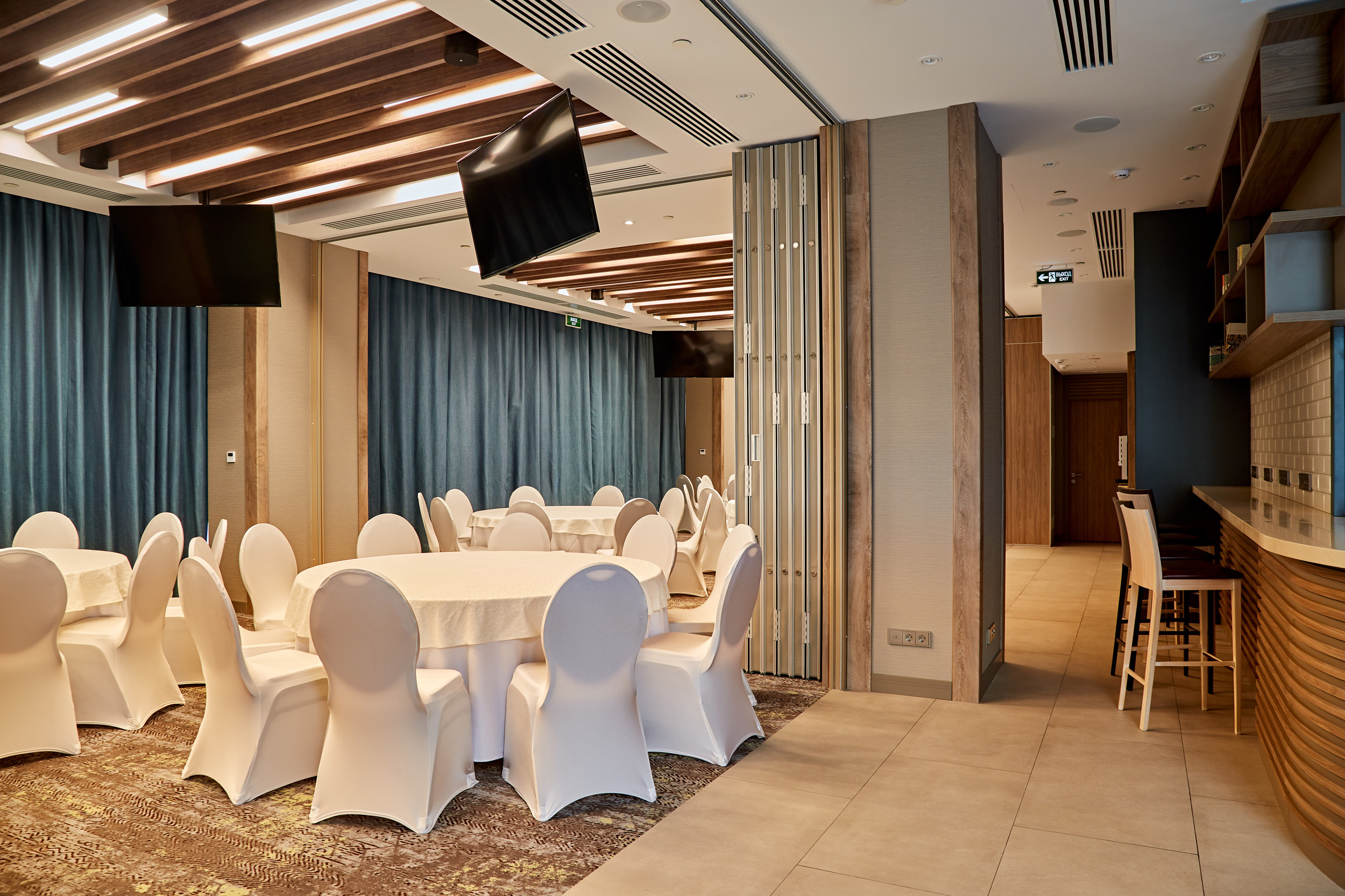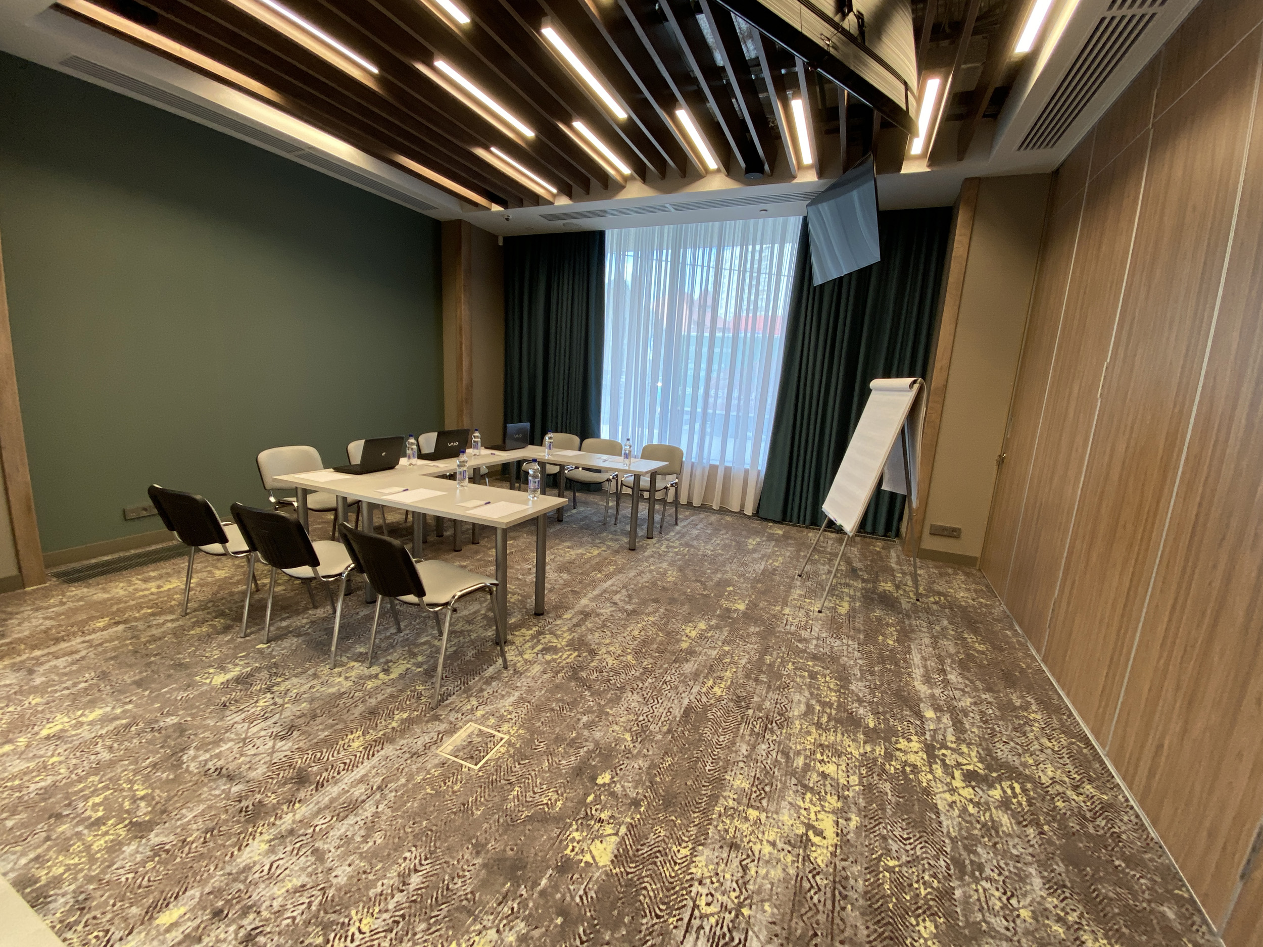 Мультимедийное пространство, которое с помощью мобильных перегородок имеет возможность трансформации под различные события и цели - от конференций, симпозиумов, бизнес-переговоров до банкетов, торжественных приемов и арт-ярмарок.