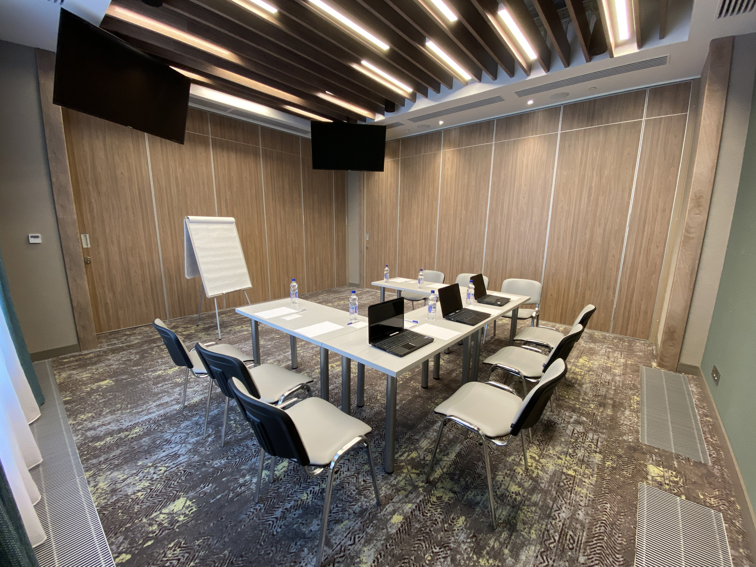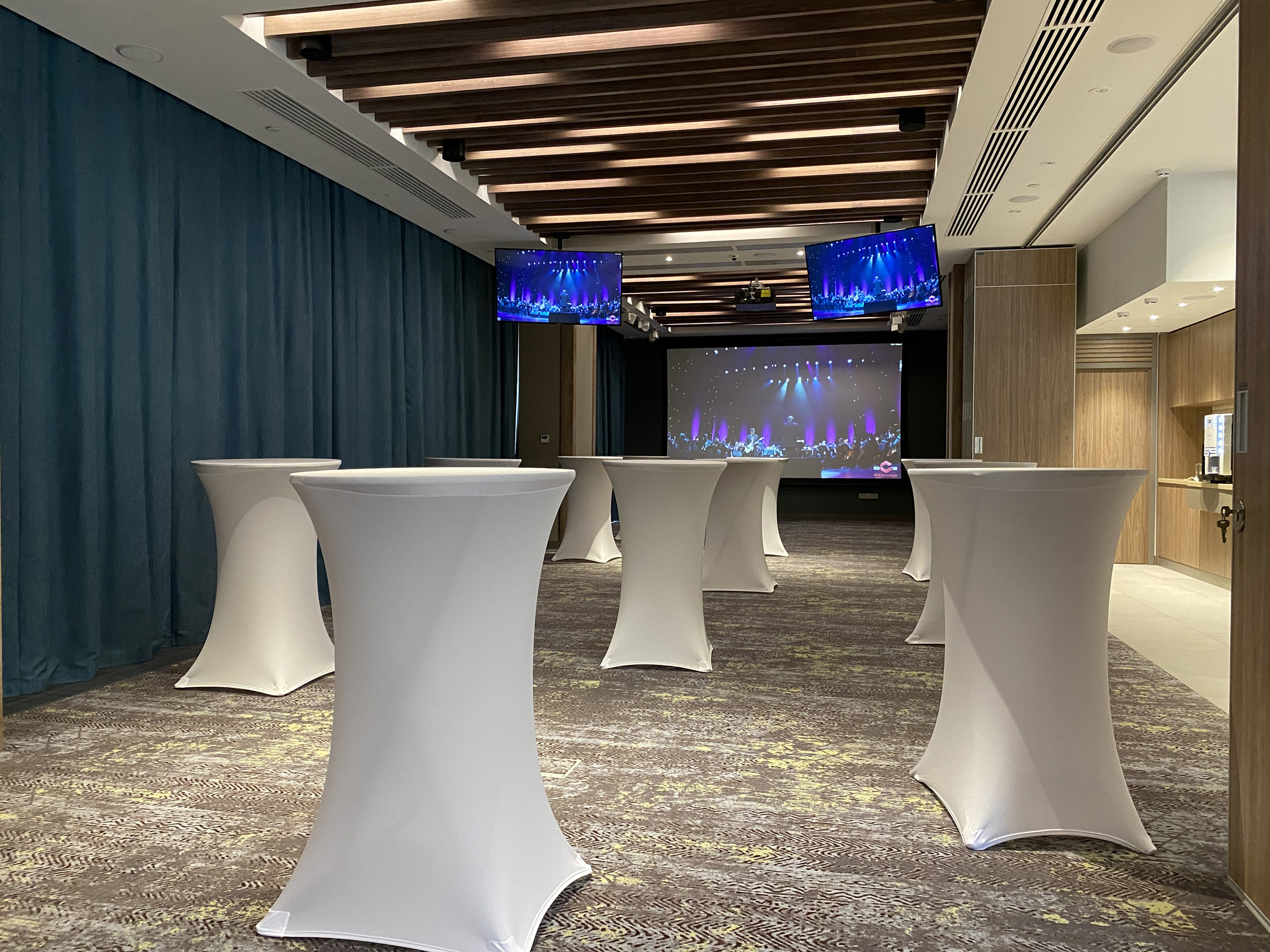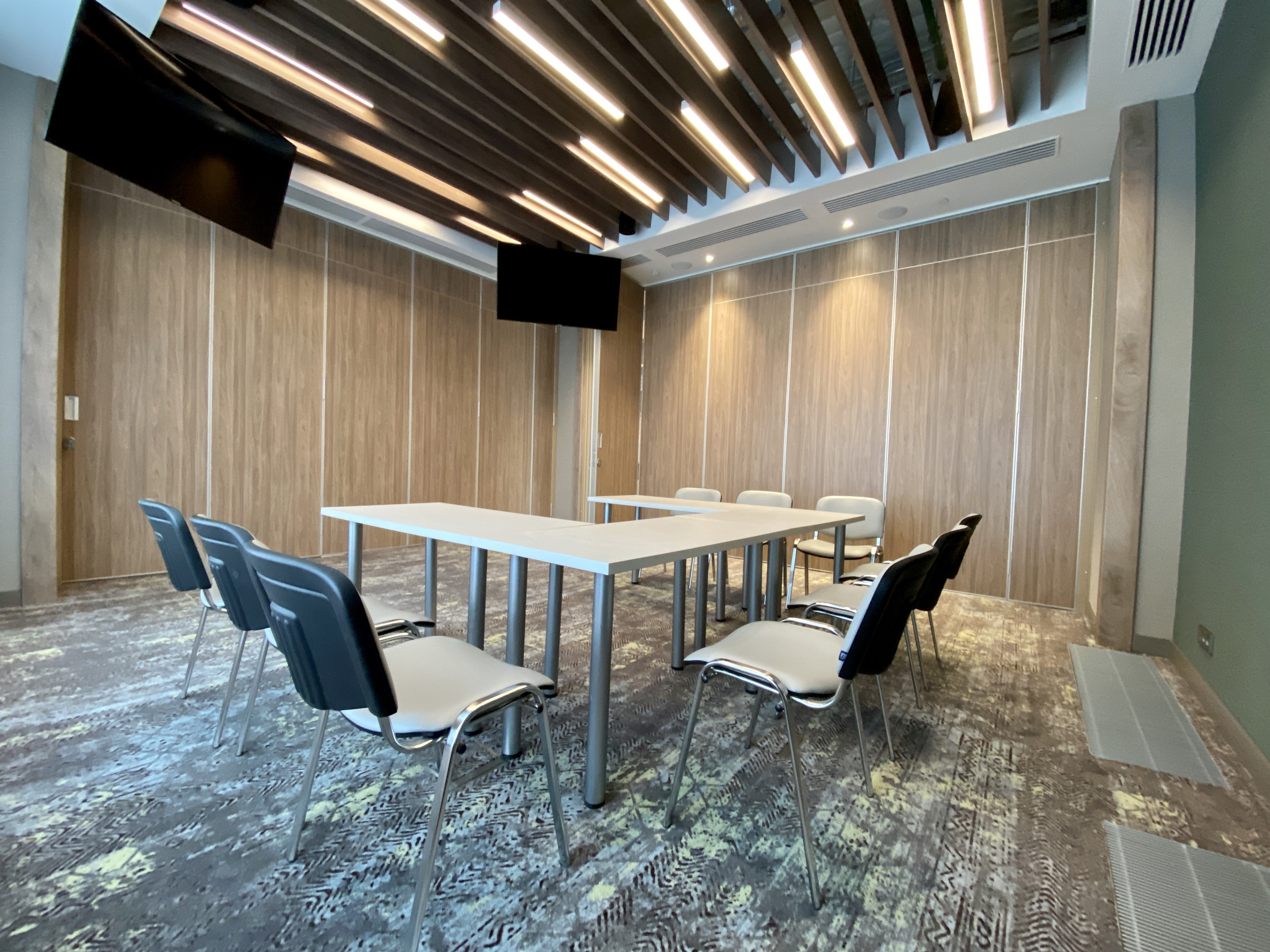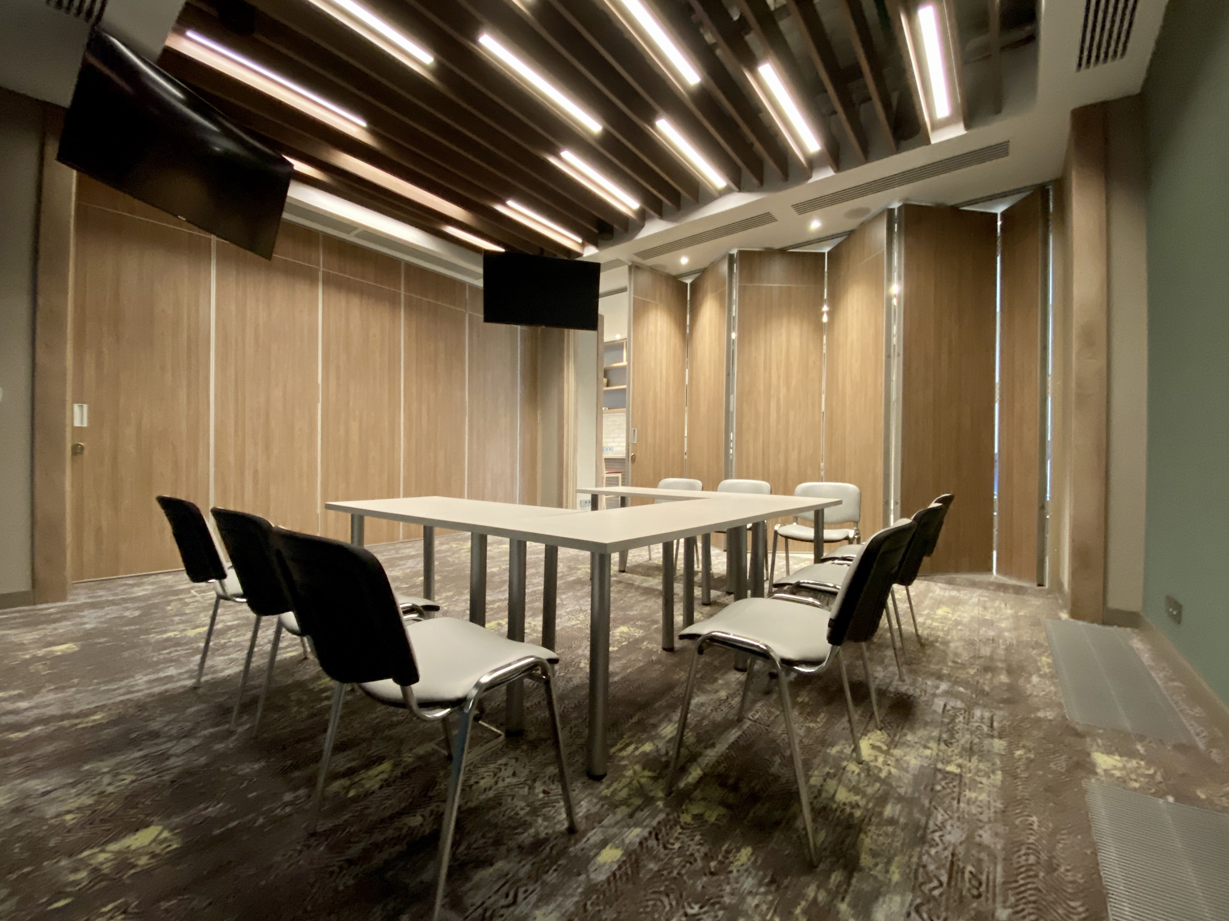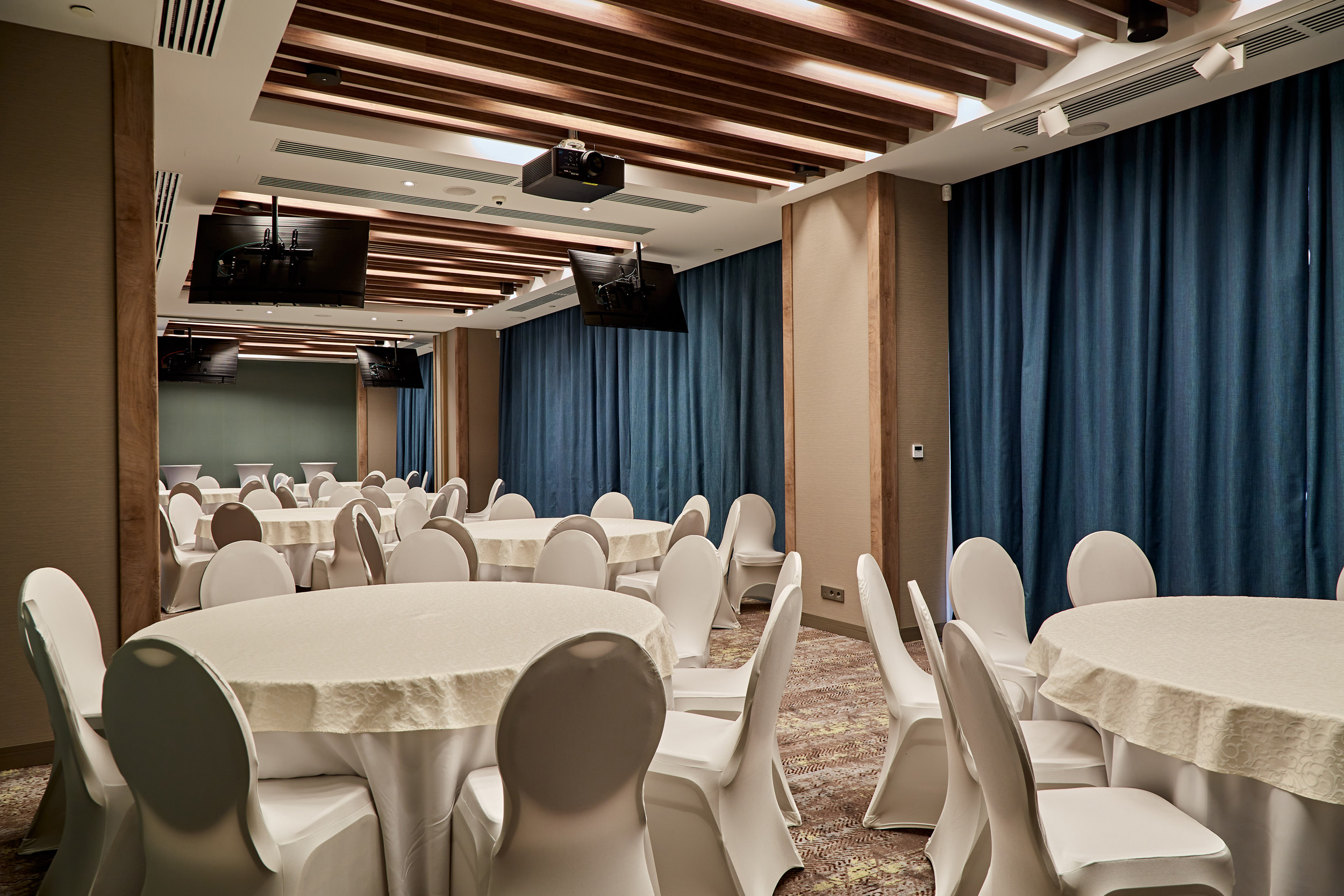 Мультимедийное пространство, которое с помощью мобильных перегородок имеет возможность трансформации под различные события и цели - от конференций, симпозиумов, бизнес-переговоров до банкетов, торжественных приемов и арт-ярмарок.