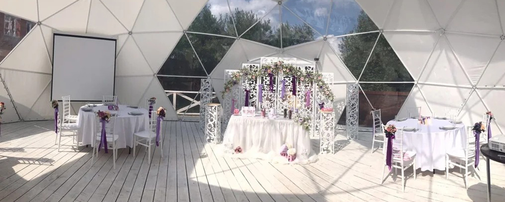 • Наличие купольного шатра с 6-метровым потолком для проведения банкетных мероприятий и торжеств.
