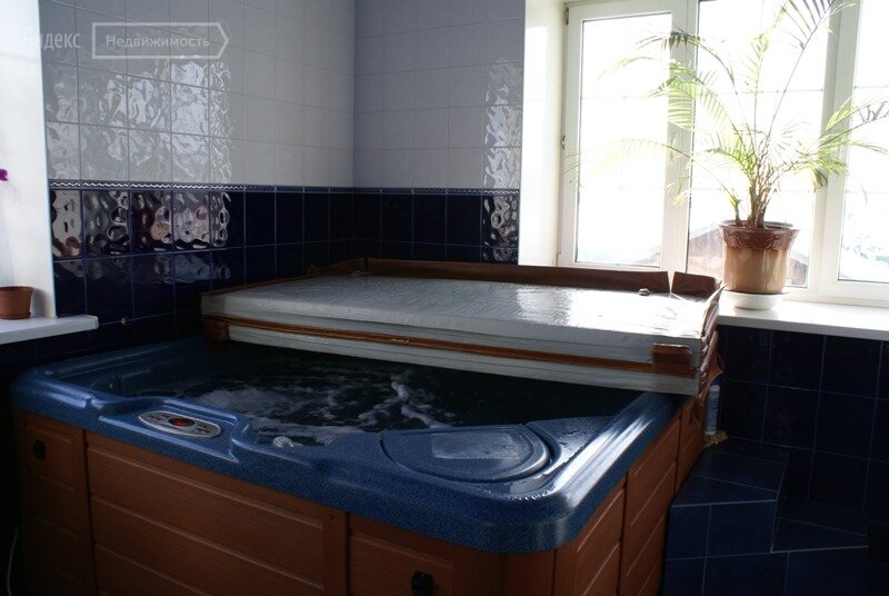 • На 1 уровне коттеджа расположены: два подогреваемых бассейна с гидромассажем (большой размером 10х5х3 и малый размером 2х2х3). Большой бассейн оборудован также функцией гейзера. Тут же две парные: финская сауна и турецкий хамам с парогенератором.