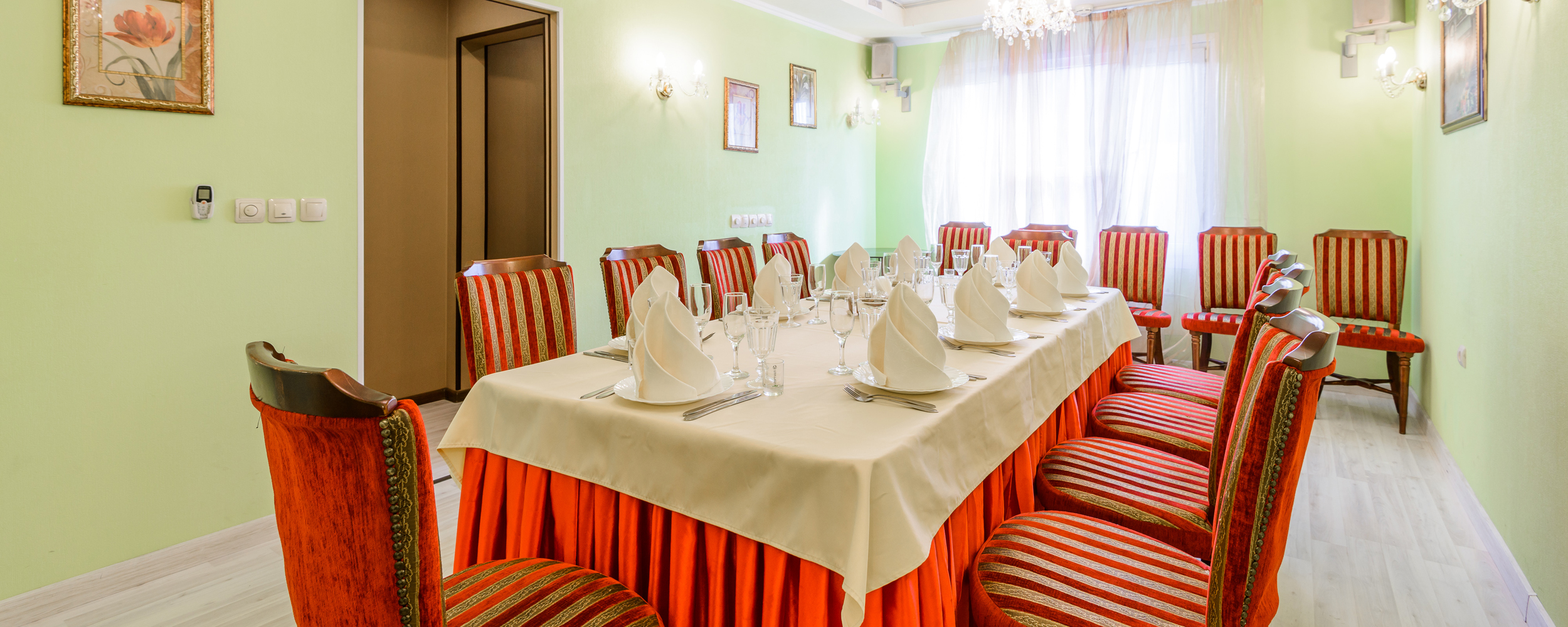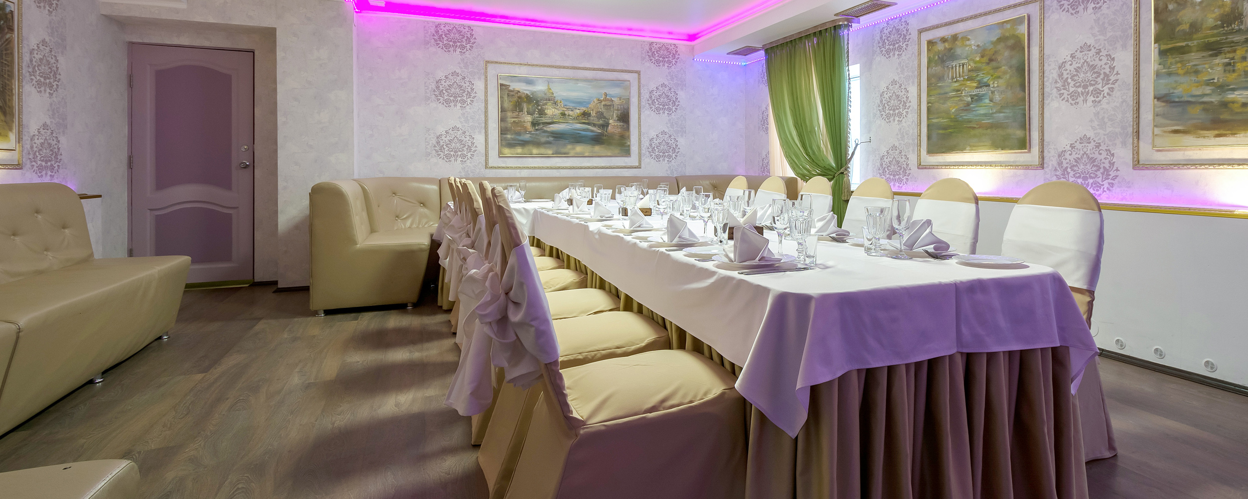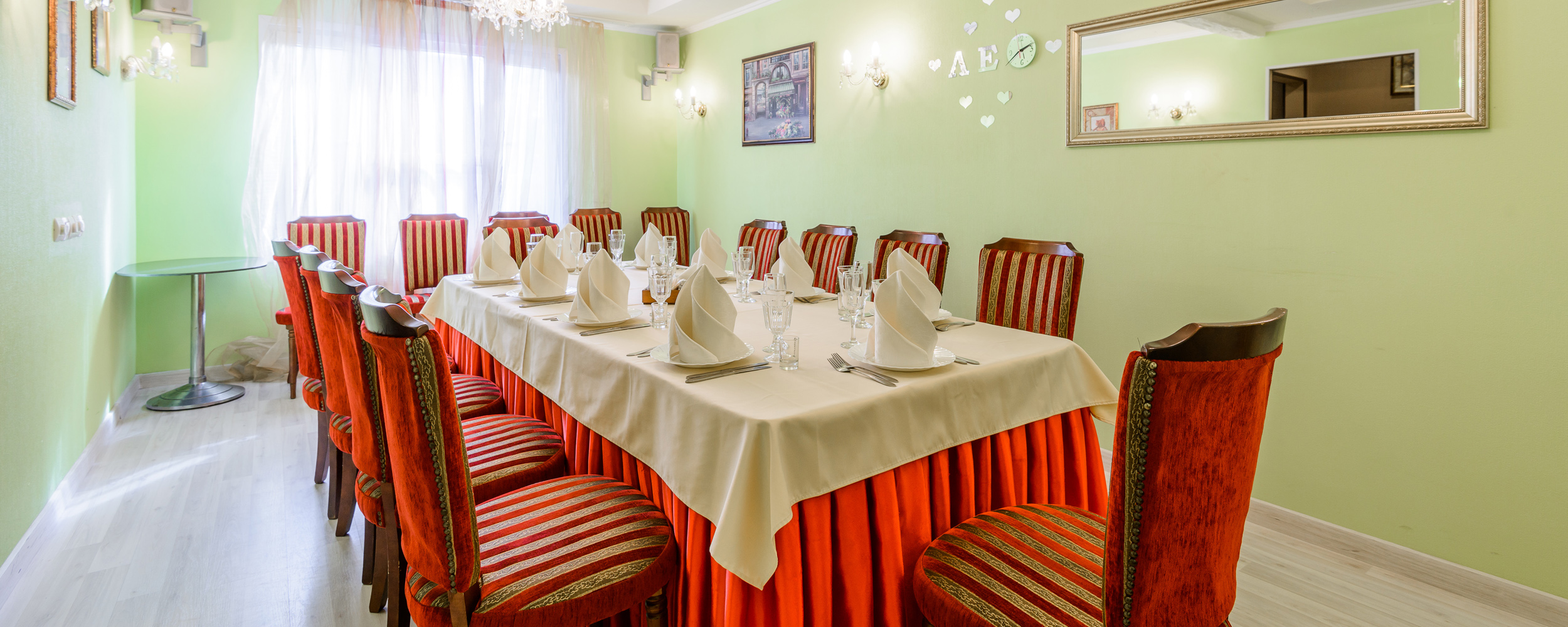 К услугам наших гостей организация мероприятий «под ключ» на любой вкус и бюджет. Мы учтем все Ваши пожелания, составим меню и украсим зал в соответствии с Вашим мероприятием. При необходимости поможем с подбором ведущего, фото и видео-оператора, артистов и музыкантов.