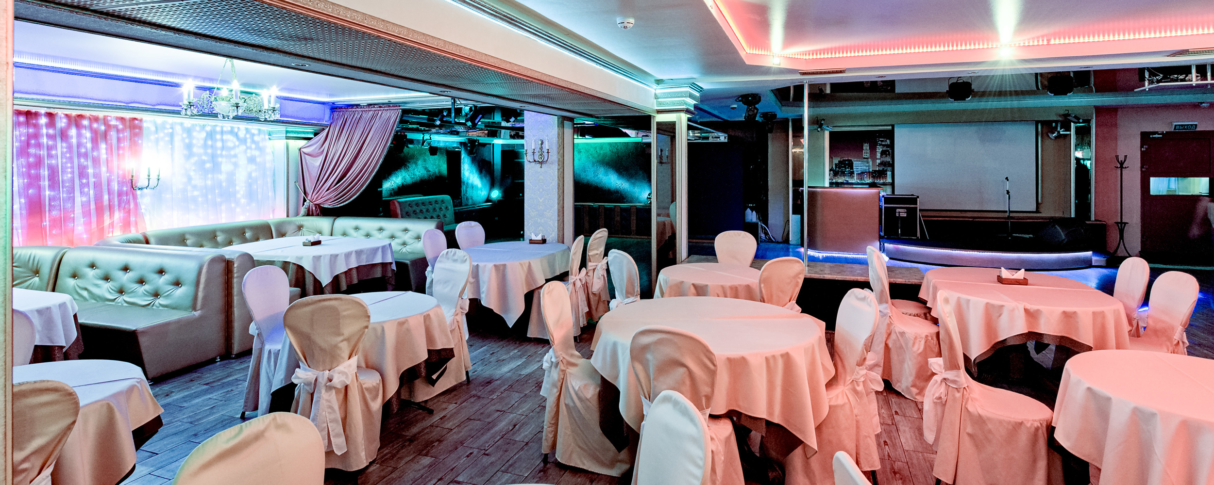 Начало банкетных мероприятий не зависит от времени работы клуба – ресторана. Отсутствует арендная плата за закрытие выбраного Вами зала.
