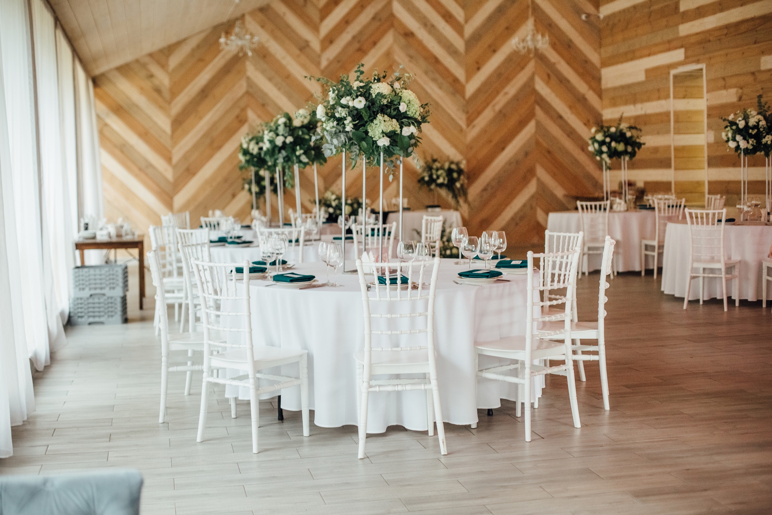 Наш комплекс состоит из 5-ти локаций, каждая из которых имеет свой вход, свою фуршетную и банкетную зону, а также свою парковку. Места для проведения торжеств отделены друг для друга, поэтому только у Вас и Ваших гостей будет эксклюзивный доступ к выбранной локации. Наши локации позволяют провести как небольшую, так и грандиозную пышную свадьбу до 120 гостей.