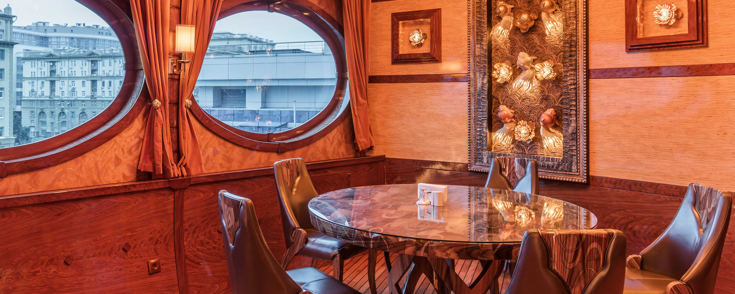 Добро пожаловать на борт! Спасибо, что для своего путешествия в Азию Вы выбрали именно наш ресторан. Разработанный опытными гидами маршрут, позволит с максимальным комфортом перенестись за многие тысячи километров: Япония, Корея, Тайланд, Вьетнам – в атмосфере роскоши и душевной гармонии Вы откроете для себя новый мир. Тиковая доска на полу, плавно переходящая в стены из индийского палисандра, просторные диваны вдоль окон из натурального ротанга, удобные столы из шпона корней экзотических деревьев и потрясающие люстры с мерцающей подсветкой, отражающие небо с плывущими облаками – наша «Лодка», не совсем лодка – а фешенебельная яхта, оборудованная по последнему слову техники. Автоматическая система «день-ночь», одним нажатием кнопки превращающая ресторан в подводную лодку с плавающими в окнах акулами и морскими львами, искусно спрятанная в экзотическом убранстве профессиональная аудио-визуальная аппаратура, достойная самой крутой дискотеки, меню на планшетахiPad, позволяющее наблюдать весь процесс приготовления блюда – одним словом, впечатляет