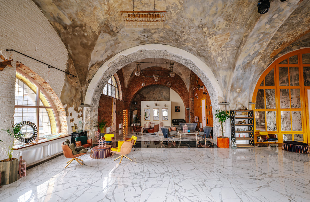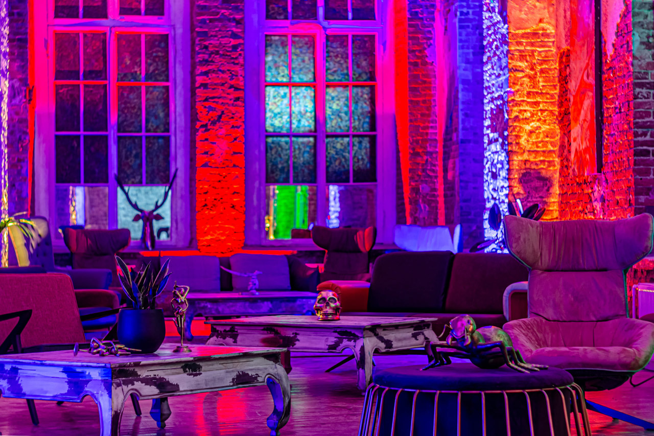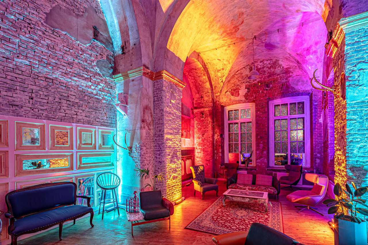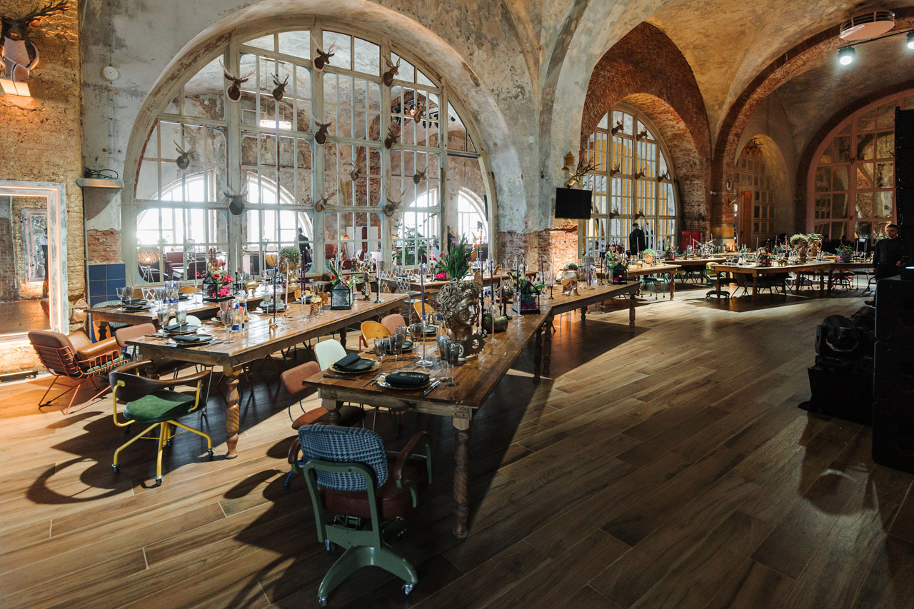 LOFT#7 — это 5 дизайнерских залов с возможностью трансформации площадью от 200 до 1500 m2 и общей вместимостью до 1500 персон.