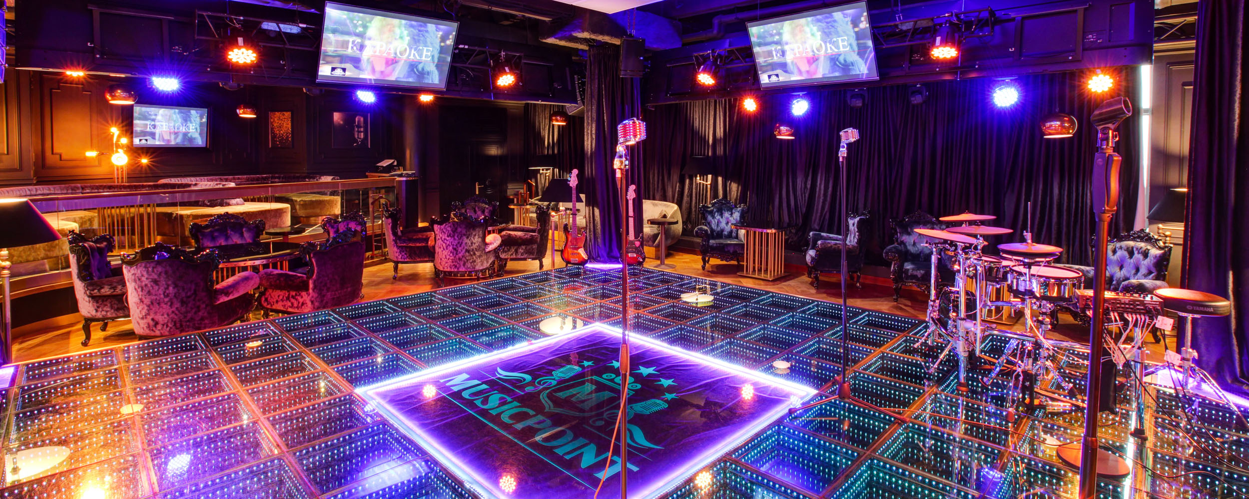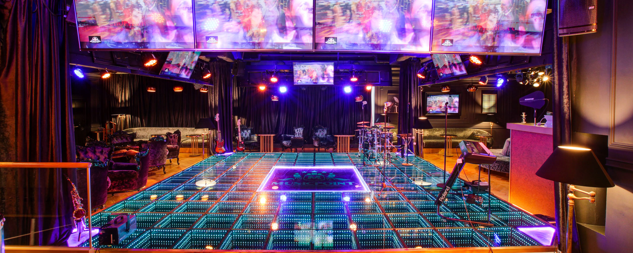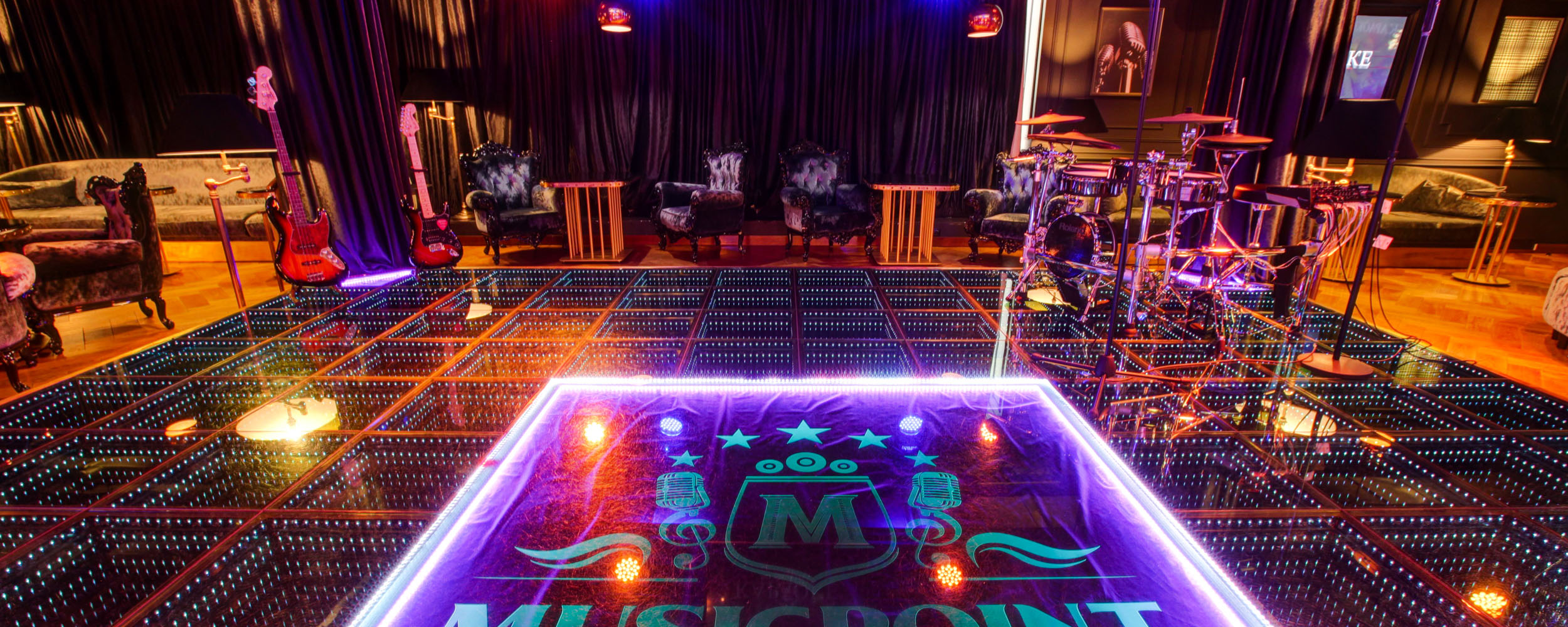 Musicpoint – Караоке бар премиум класса на территории развлекательного центра «Матч Поинт». Роскошный дизайнерский интерьер в стиле арт-деко, мультимедийный танцпол, профессиональное техническое оборудование и акустика, огромный выбор песен и прекрасный сервис – все это покорило сердца ценителей караоке Столицы.
