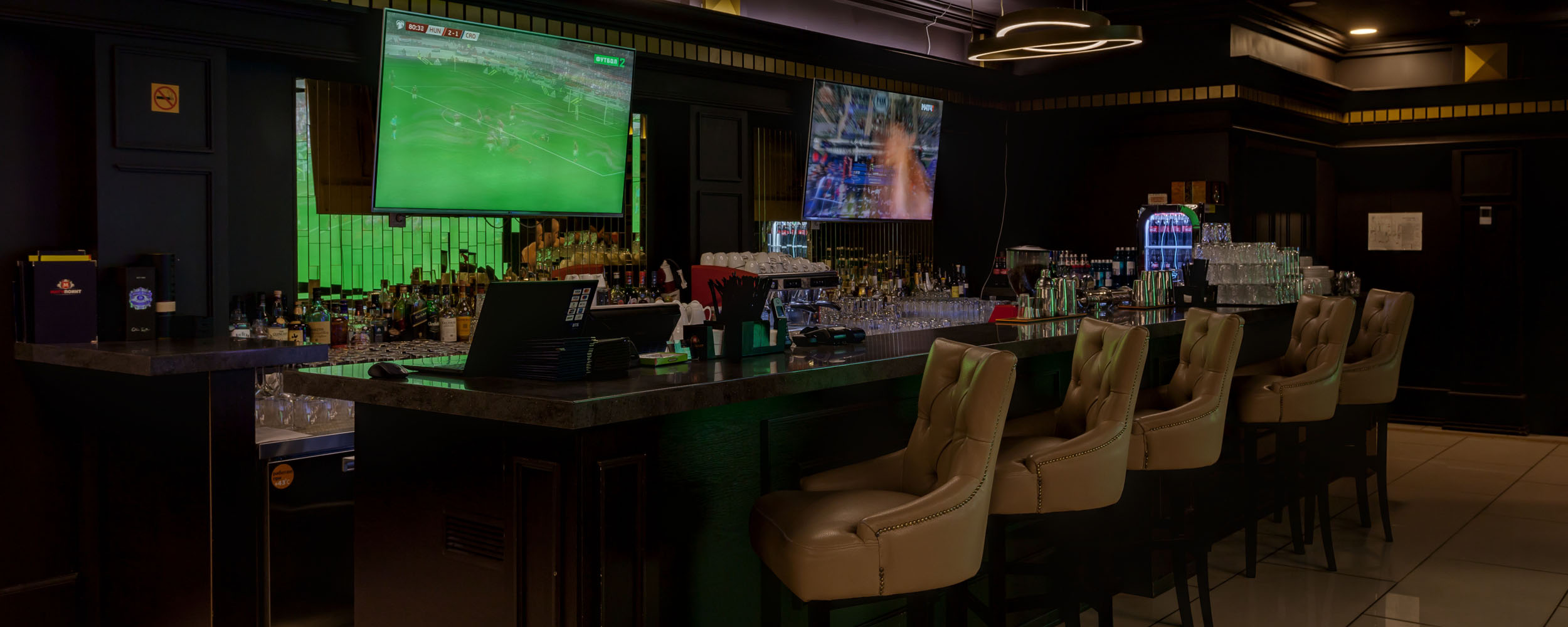 Спорт бар МАТЧПОИНТ на Новом Арбате хорошо известен и любим ценителями азартного отдыха. Стильный зал с диванами и столиками на четверых и 2 амфитеатра с комфортными диванами для компаний до 6 человек оборудован двумя широкоформатными плазменными экранами диагональю 5 метров! Здесь Вы сможете посмотреть прямые трансляции любых спортивных событий: футбольных матчей, хоккейный баталий, теннисных турниров, и бойцовых поединков. Наши технические возможности позволяют показывать прямые трансляции 24 часа в сутки. Наличие восьми ВИП залов, каждый из которых оборудован по последнему слову техники, позволяет показывать несколько независимых трансляций одновременно. У нас регулярно проводятся пресс-конференции, телемосты со звездами спорта, а также живые комментарии футбольных матчей от топовых спортивных комментаторов. Разнообразное барное и кухонное меню порадует самых взыскательных посетителей.