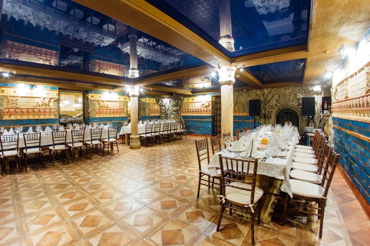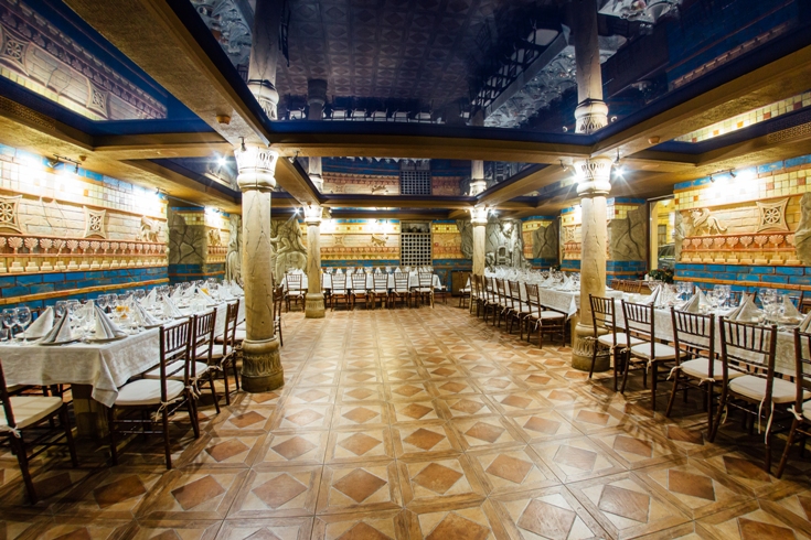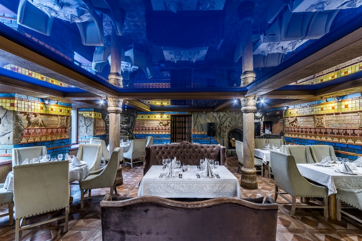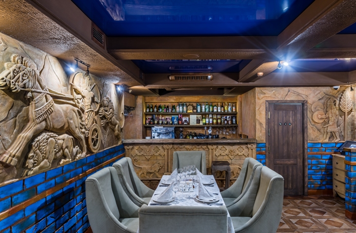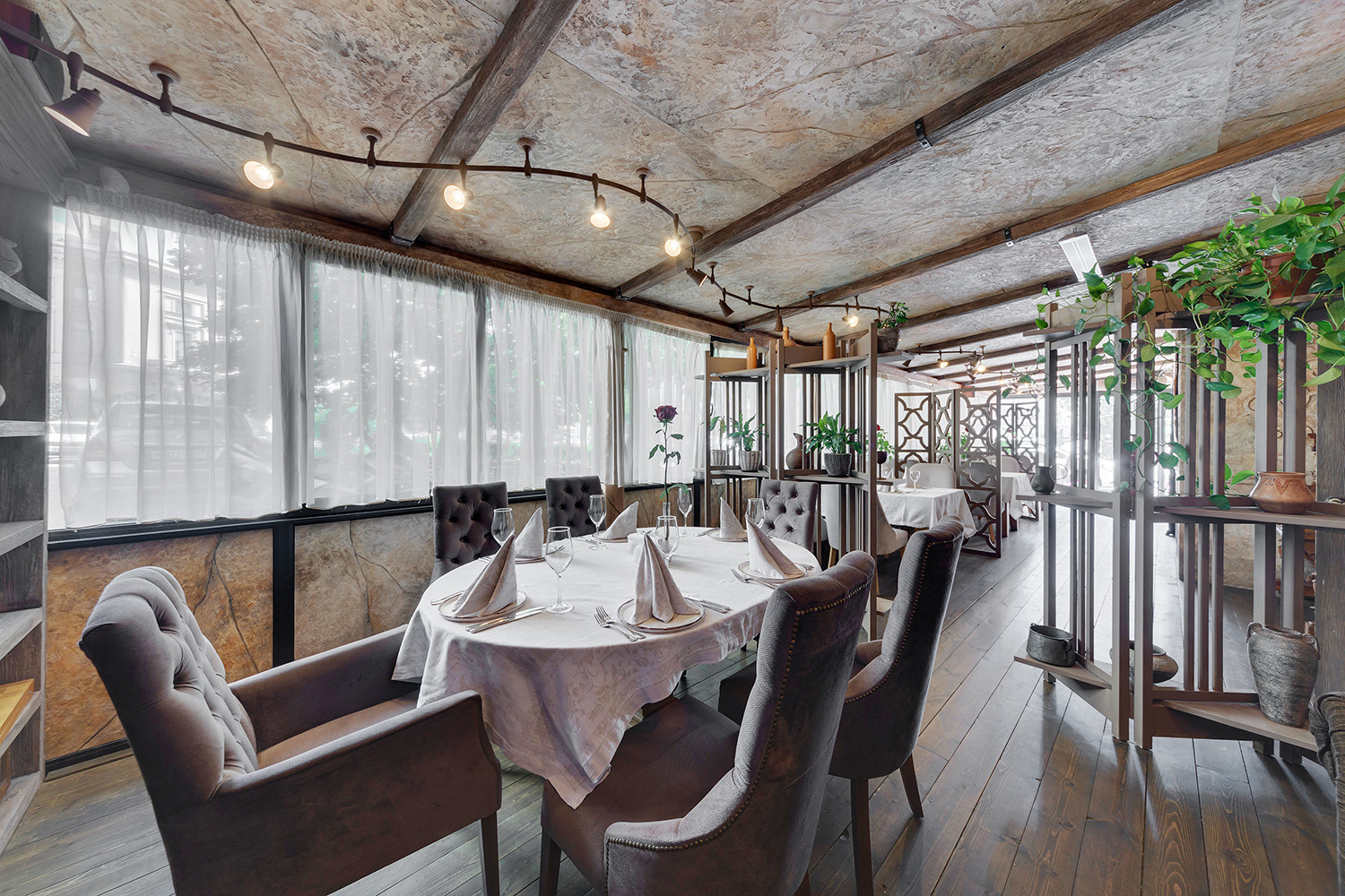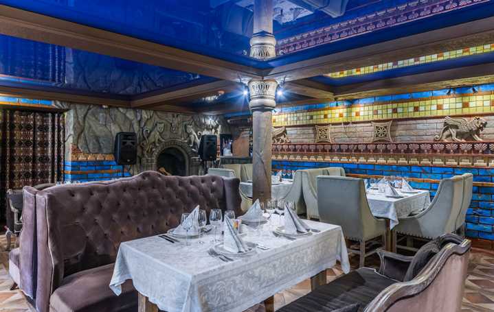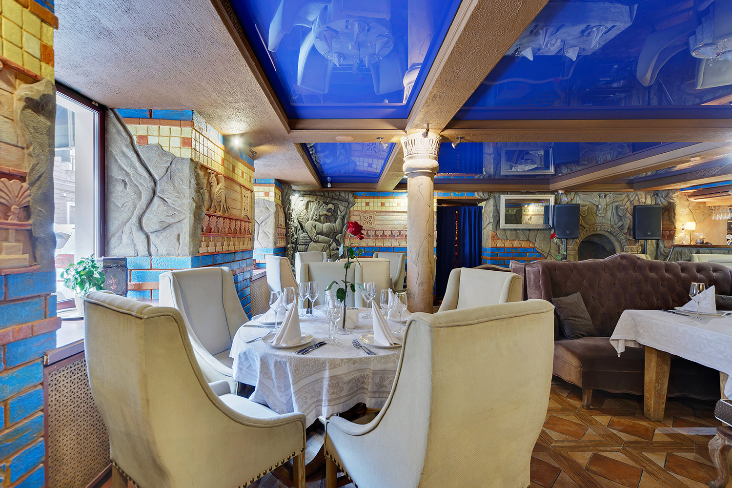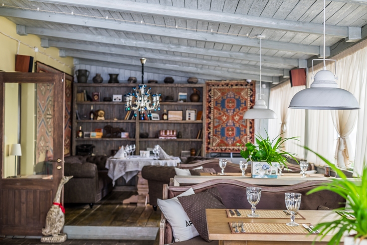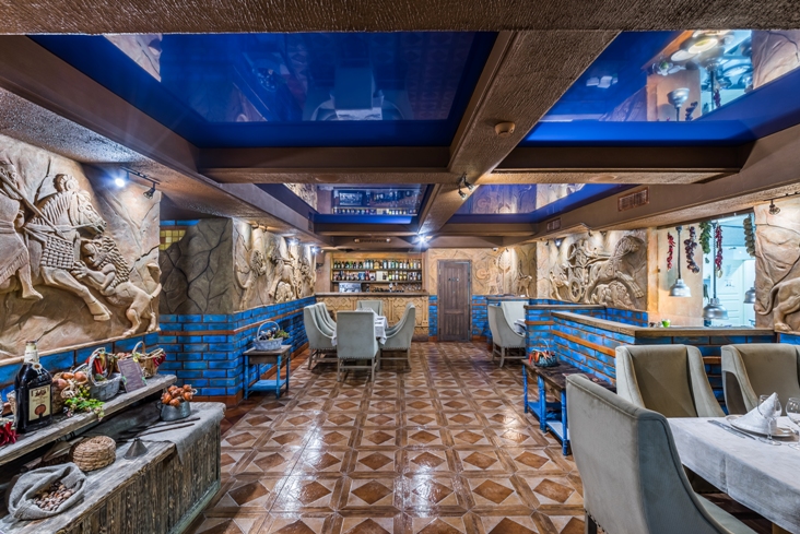 Интерьер ресторана полностью олицетворяет культуру Армении. На стенах - точная копия барельефов крепости Эребуни (Ереван). Уютную атмосферу создают мягкие диваны, эксклюзивные скатерти, посуда ручной работы и обивка мебели из бархатной ткани традиционного армянского цвета. Ресторан состоит из двух залов: основной и малый (с баром, открытой кухней и лавкой армянских продуктов), а также уютной всесезонной террасы с большими окнами, цветами и атрибутами древней Армении.