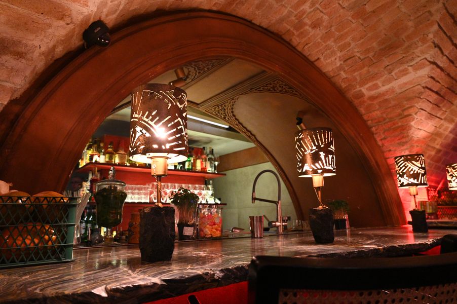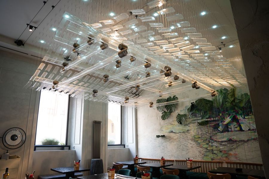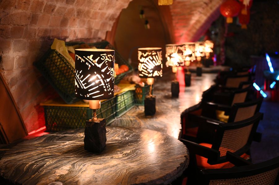 На первом этаже, отсылающем антуражем к современной Азии, представлен стритфуд. Здесь действует сценарий «пришел, выпил, закусил». Быстро и с чувством эстетики, потому что за баром наливают 15 видов авторских шотов от бренд-бармена холдинга Андрея Корнилова и отдают 21 вид дим-самов – легкой закуски из тонкого теста и начинки. Все шоты – про яркость азиатских вкусов и легкое сумасшествие. «Леди бой» с клубничным сиропом или «Белое золото» с кокосовой сгущенкой – на роме. «Крейзи Сингапур» с черной смородиной и фиалкой или бабушкин любимчик «Стен Ли» с киви и базиликом – на джине.
