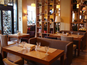 «Нектарин» классически поделен на два зала – для курящих и некурящих. Помещения разделены между собой огромным стеллажом, заполненным интересными штучками, что делает интерьер по-домашнему уютным и комфортным. Дизайнерская отделка заведения идеально подходит как для семейных обедов, так и для отдыха шумными компаниями.