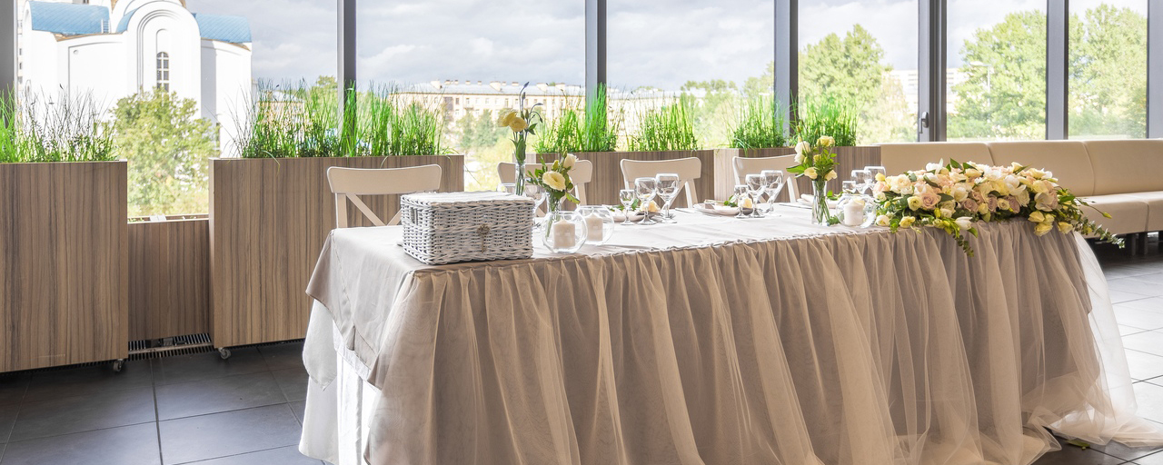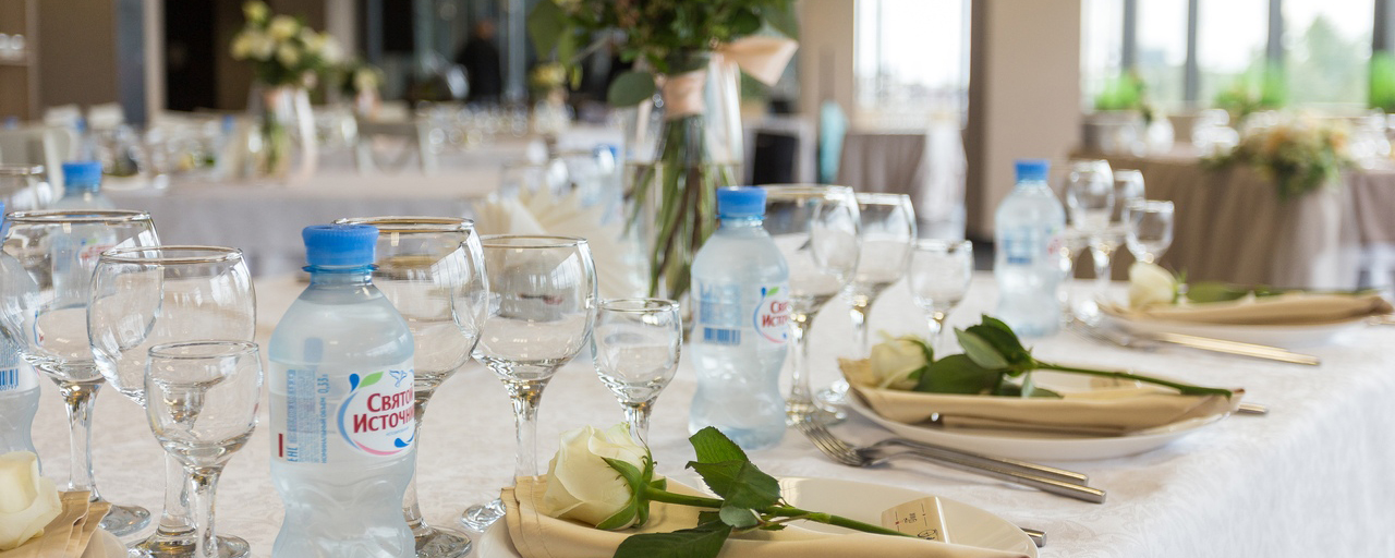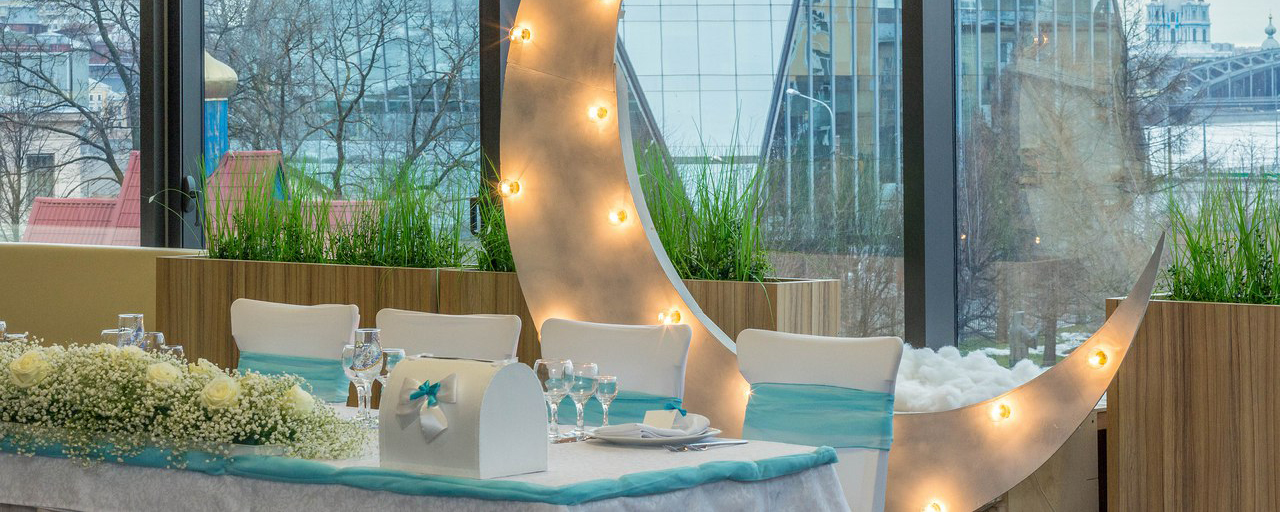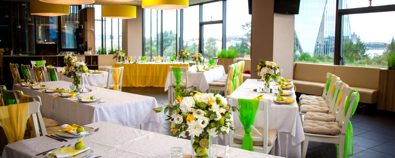 Банкетный зал ресторана "Панорама", рассчитанный на 100 посадочных мест, прекрасно подойдет для проведения любого мероприятия.