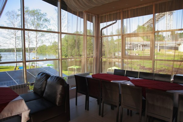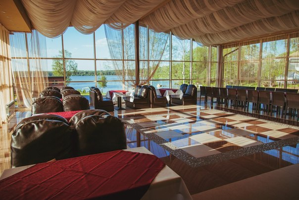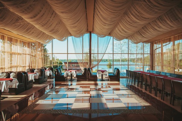Просторный, комфортабельный ресторан с панорамным видом на Кавголовское озеро и частным пляжем, приятно удивит вас разнообразим кухни, заботливым персоналом и качеством сервиса.