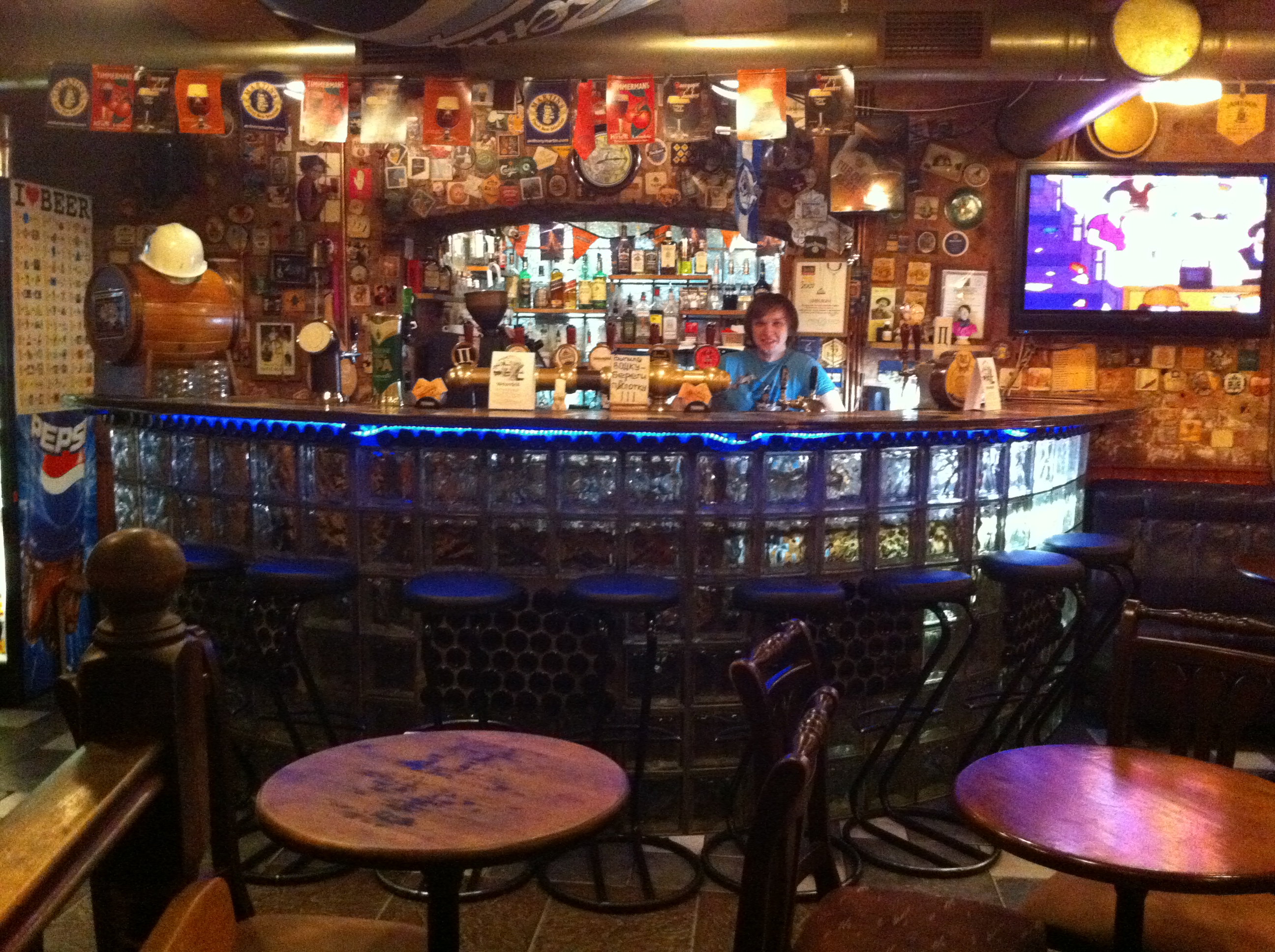 Обстановка раскрепощенная, располагает к неформальному общению. Большой зал с диванчиками по углам для больших компаний. Вообще, отличное место для дружеских посиделок в шумных компаниях, к чему отлично располагает пивная карта: 10 видов разливного пива (темное, красное, белое, нефильтрованное, фильтрованное и пр.), - всего около 40. Фишка пабов: пивные коктейли.