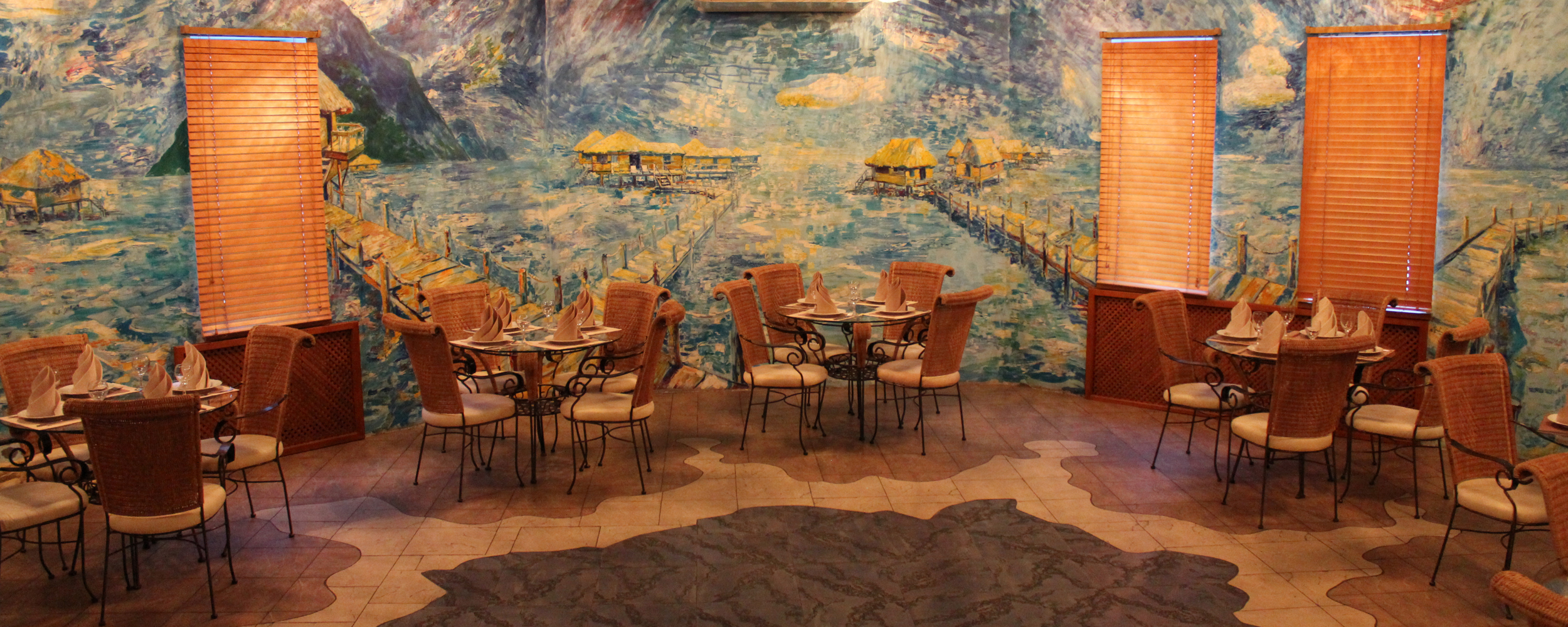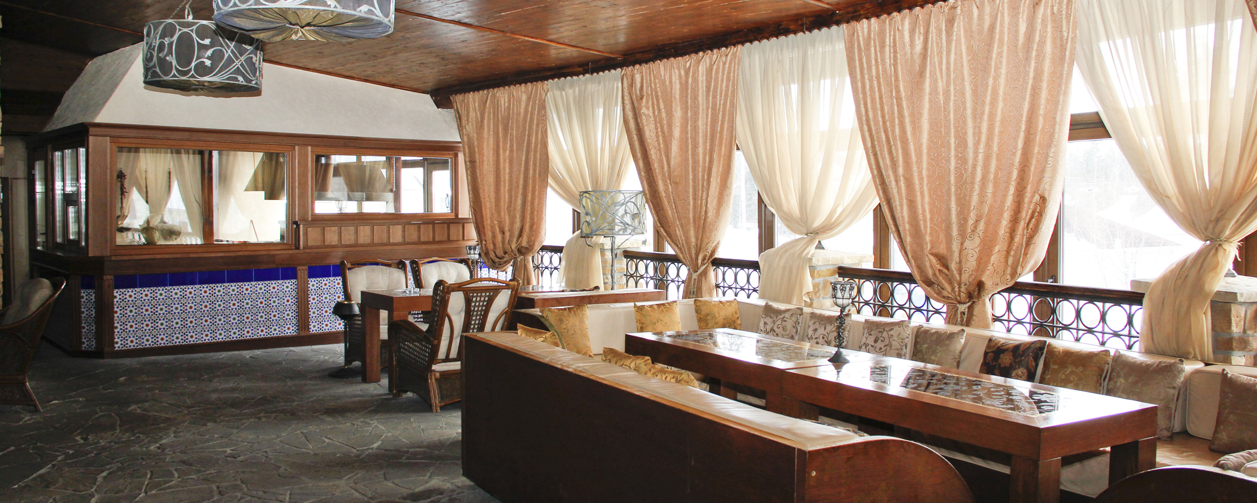 Едва переступив порог, уже в холле вы оказываетесь в атмосфере тепла и уюта. Изысканный интерьер с изменяемым освещением поможет создать настроение романтического вечера или наоборот веселого праздника, так как просторные залы ресторана идеальны для проведения банкетов и корпоративных мероприятий.