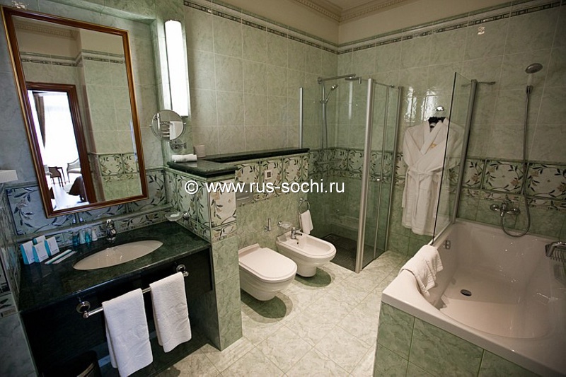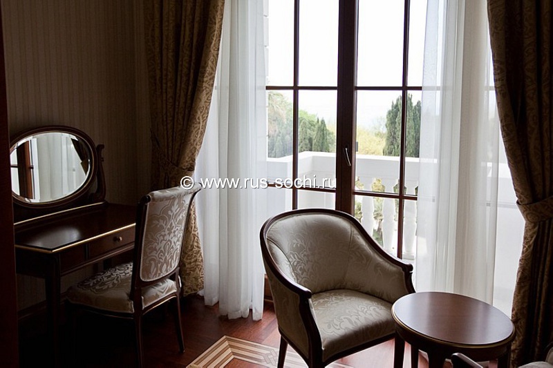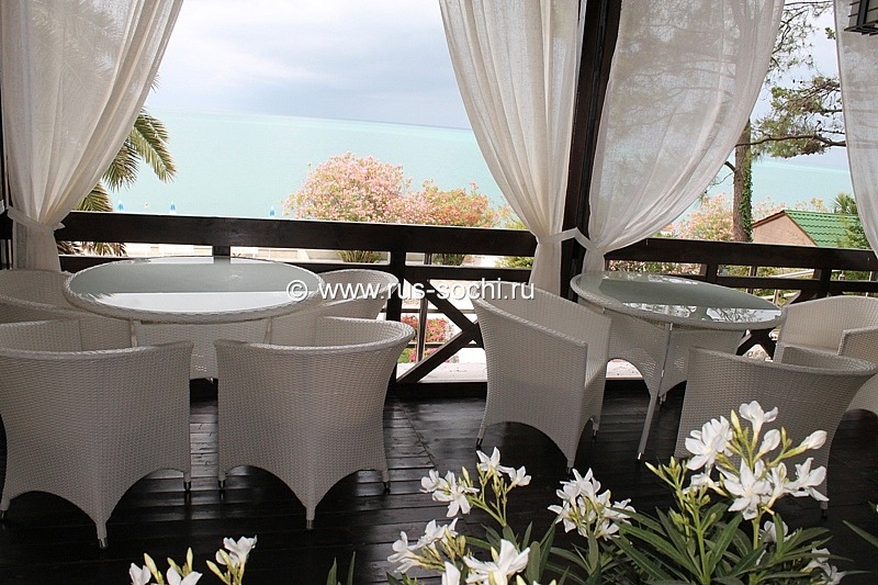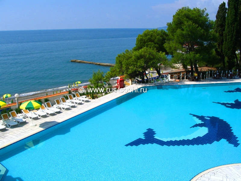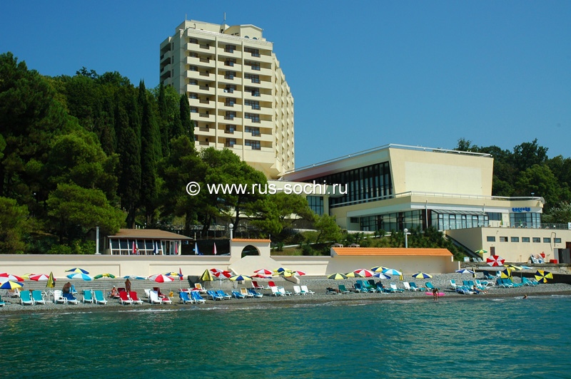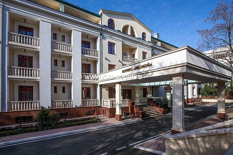 Санаторий «Русь» расположен на берегу Черного моря, рядом с летней резиденцией Президента России «Бочаров ручей»